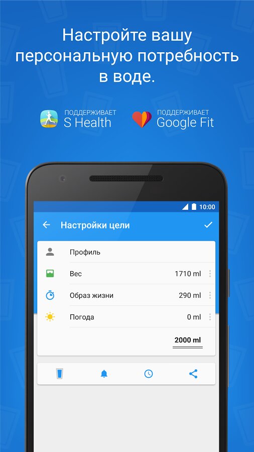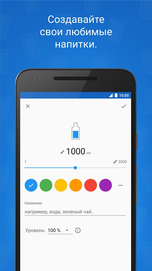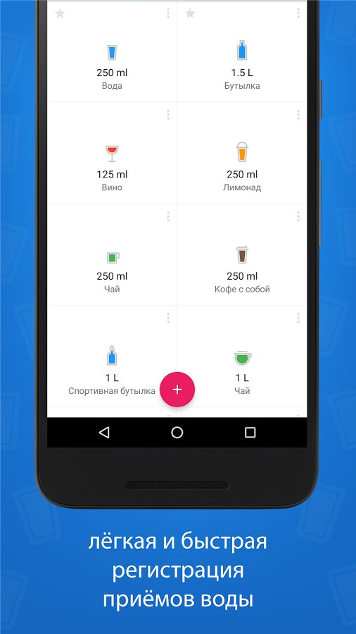 Удобно, что никто не просит фиксировать данные вручную – достаточно выбрать из небольшого списка предложенных вариантов: полная бутылка или небольшой стаканчик.