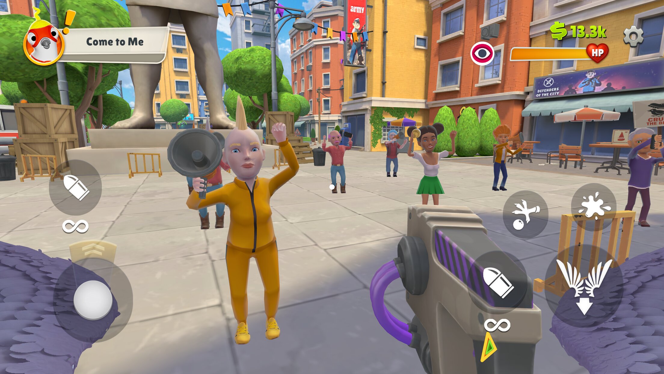 - Динамичные жители: дружелюбные кормильцы, злые ненавистники, рассеянные пешеходы и идеальные мишени.