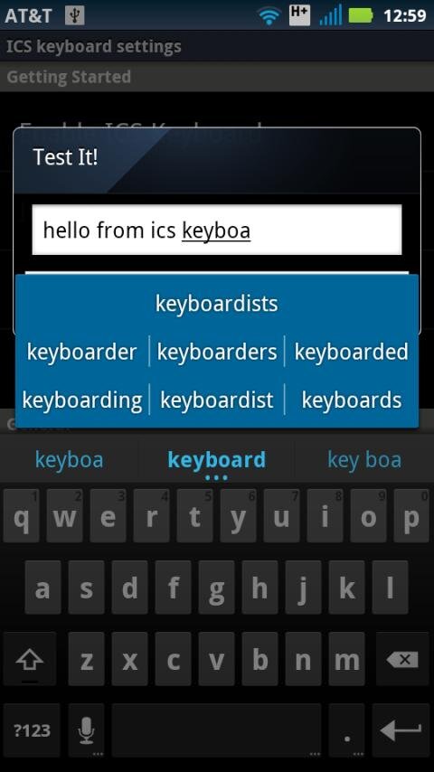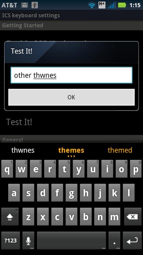 Портированная клавиатура с Android 4.0 с несколькими цветовыми темами и стандартными настройками как в оригинальной клавиатуре на Android. В настройках есть функция специальное меню для тестирования работы клавиатуры или убедиться в работе любой функции.