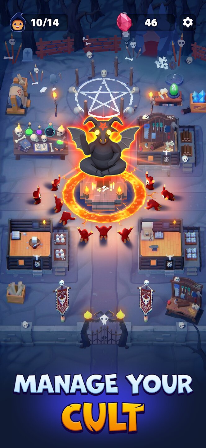 Вы начинаете как начинающий лидер культа с горсткой последователей. Ваша миссия — управлять растущей общиной, назначать задачи и проводить мрачные эксперименты, чтобы накопить богатство и власть. По мере роста вашей империи вы будете открывать мощные улучшения, открывать новые способности и расширять свою деятельность в разных местах.