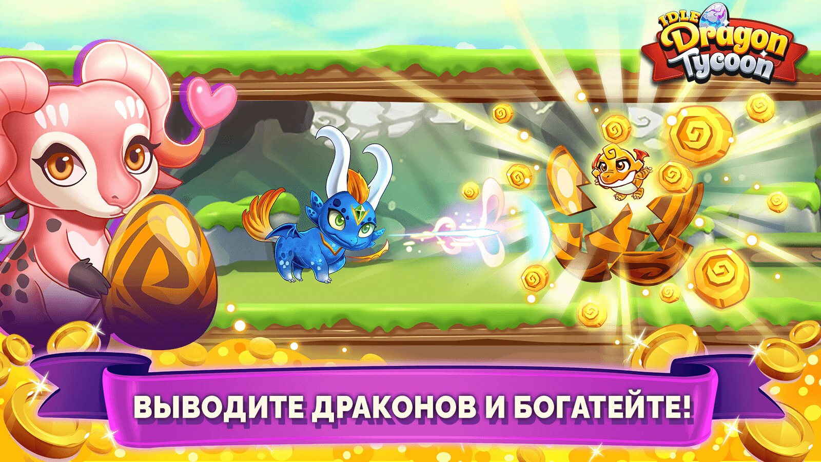 - Развивайте и выращивайте своих драконов! Вы станете драконьим магнатом в этой игре, даже когда вы не в сети!