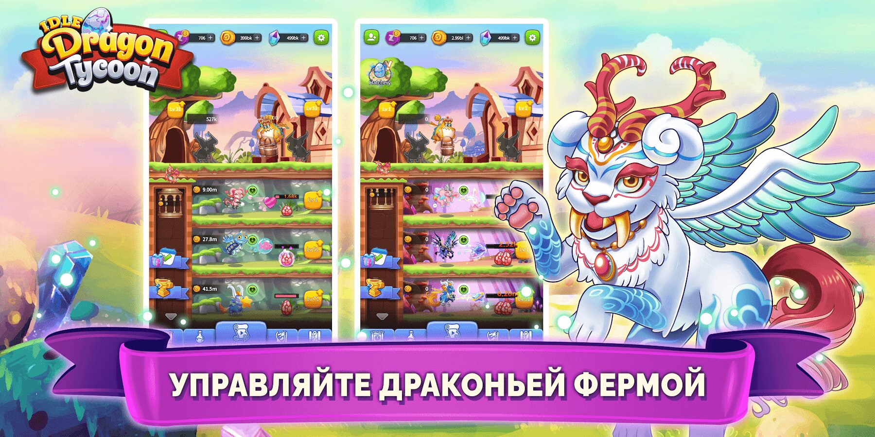 - Создайте симуляцию праздной драконьей империи без бесконечных нажатий, как в других играх-кликерах!