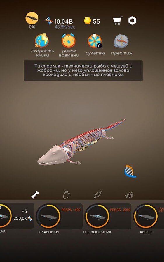 Также, как только накопится достаточное количество очков, которые вы получаете за развитие существ, вы сможете их использовать для ускорения роста и развития существ. В игре вы увидите красивую графическую составляющую, которая поможет вам в мельчайших деталях разглядеть развитие существ. Все очки вы будете зарабатывать как пассивно, так и активно. Пассивно — вы будете получать с каждого существа определенное количество очков, в зависимости от уровня его развития, а активно вы сможете заработать, нажимая на существ.