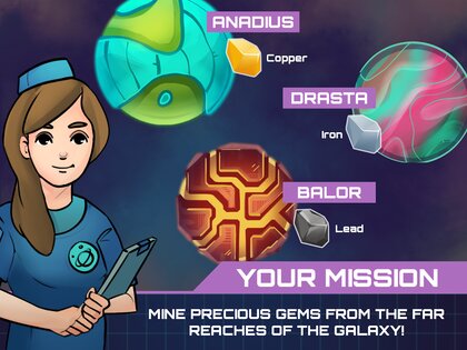 - Нажмите, чтобы разбивать астероиды и зарабатывать редкую руду!