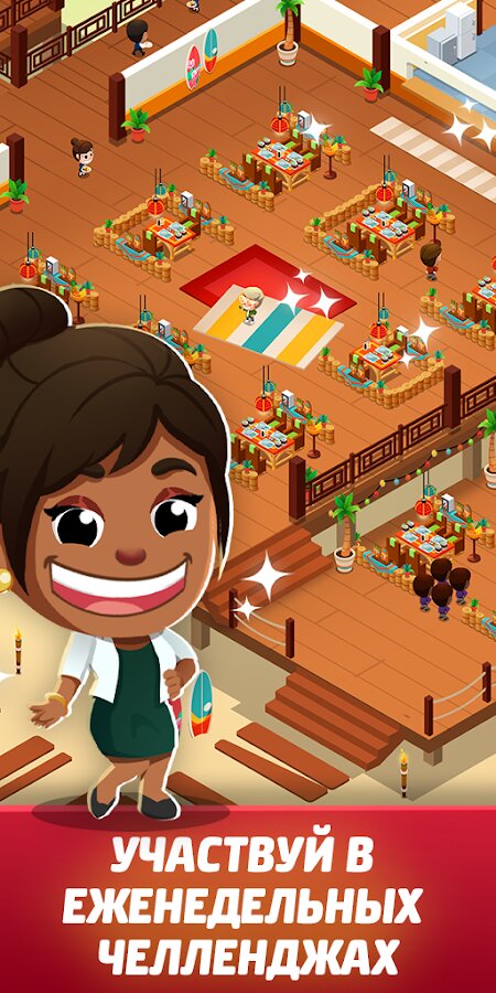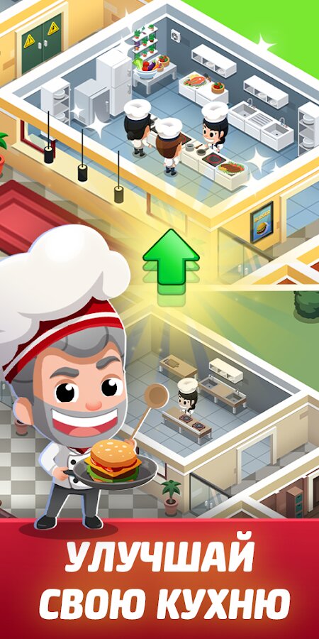 - Множество возможностей расширения бизнеса — улучшайте производство и навыки шеф-повара, переоснащайте кухню.