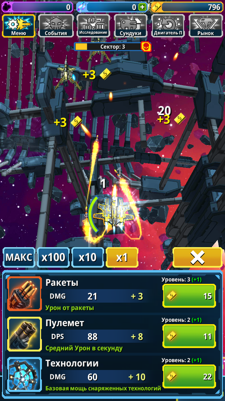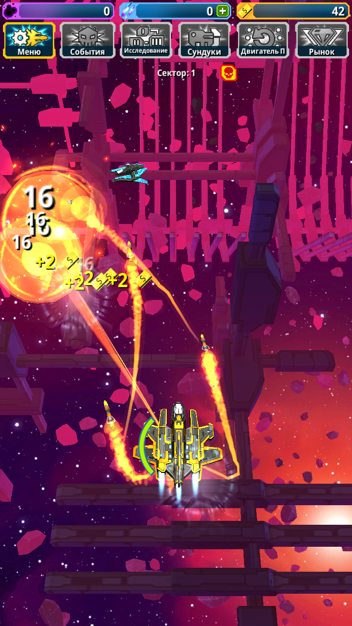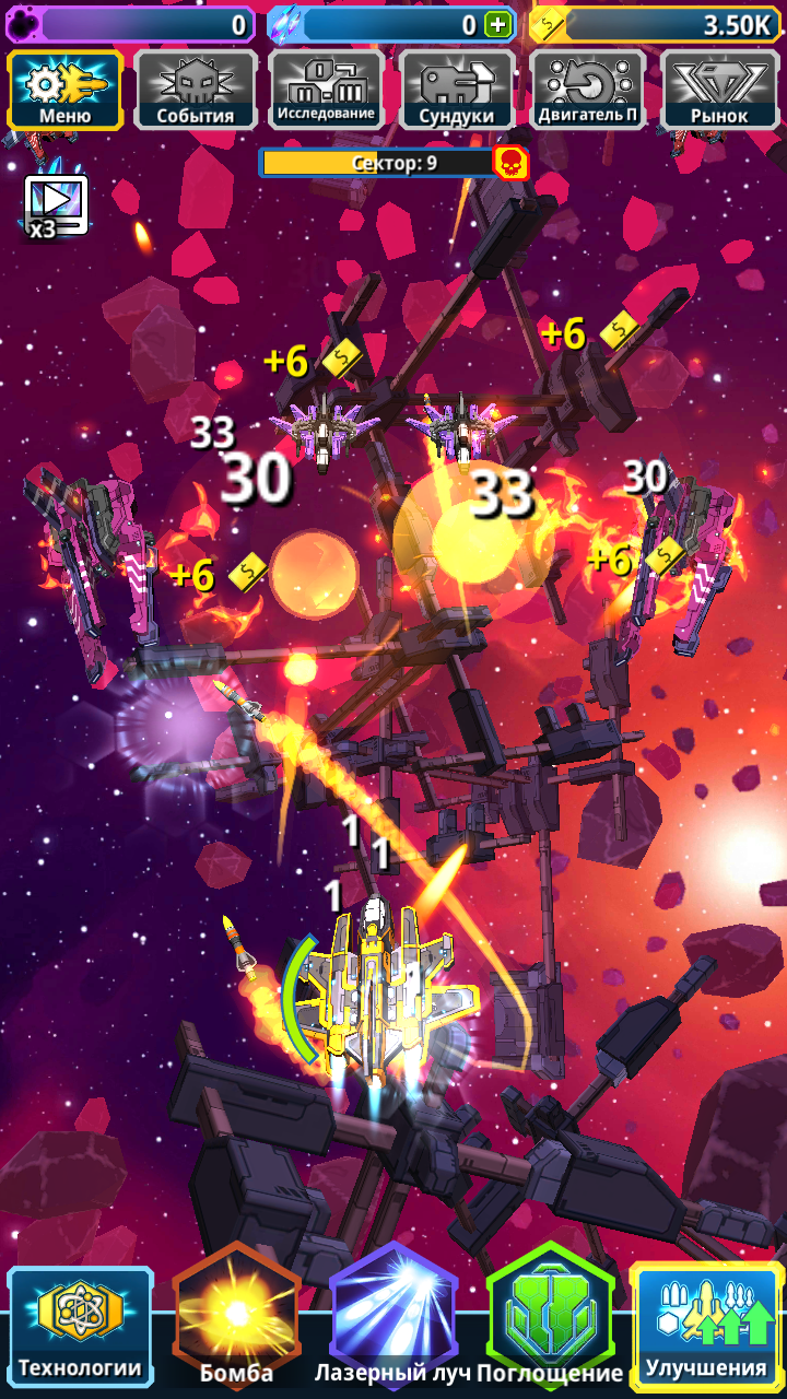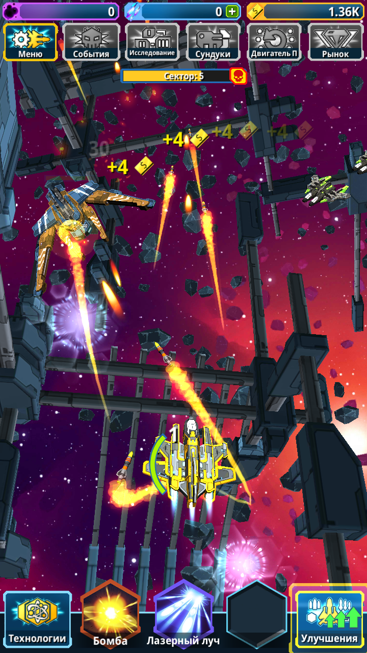 Динамичная космическая одиссея за сокровищами, сражения с сонмищами соперников, настроенных далеко не дружелюбно. Разбейте их посредством технологий разрушения. Враги становятся все мощнее – и вам дремать нельзя. Завоевывайте галактическую территорию, темная материя пригодится для улучшения разрушительной силы вашего оружия.