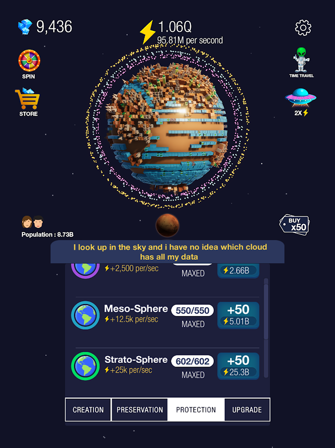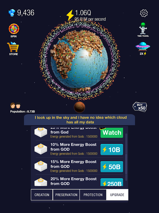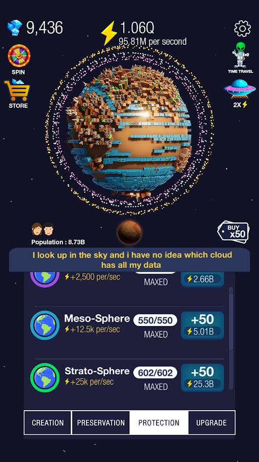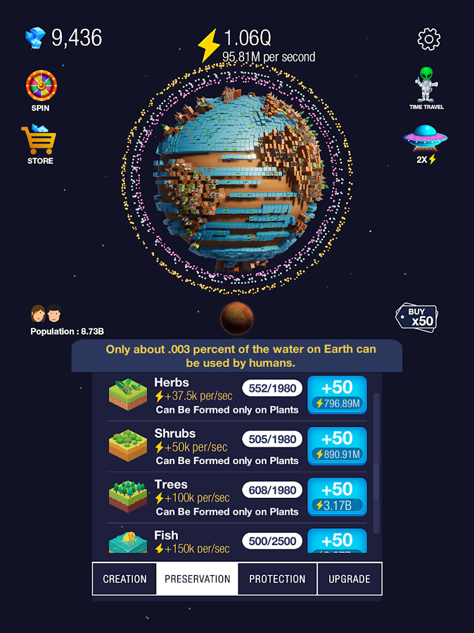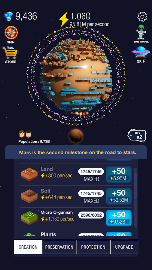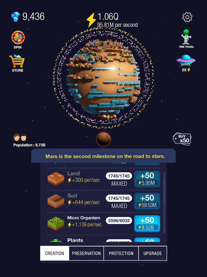 Ведь вы никогда не задумывались над тем, как могла бы еще выглядеть наша планета? Благодаря данной игре вы сможете развивать и заполнять планету так, как этого хотите именно вы. Используйте такую уникальную возможность и посмотрите, что из этого выйдет.