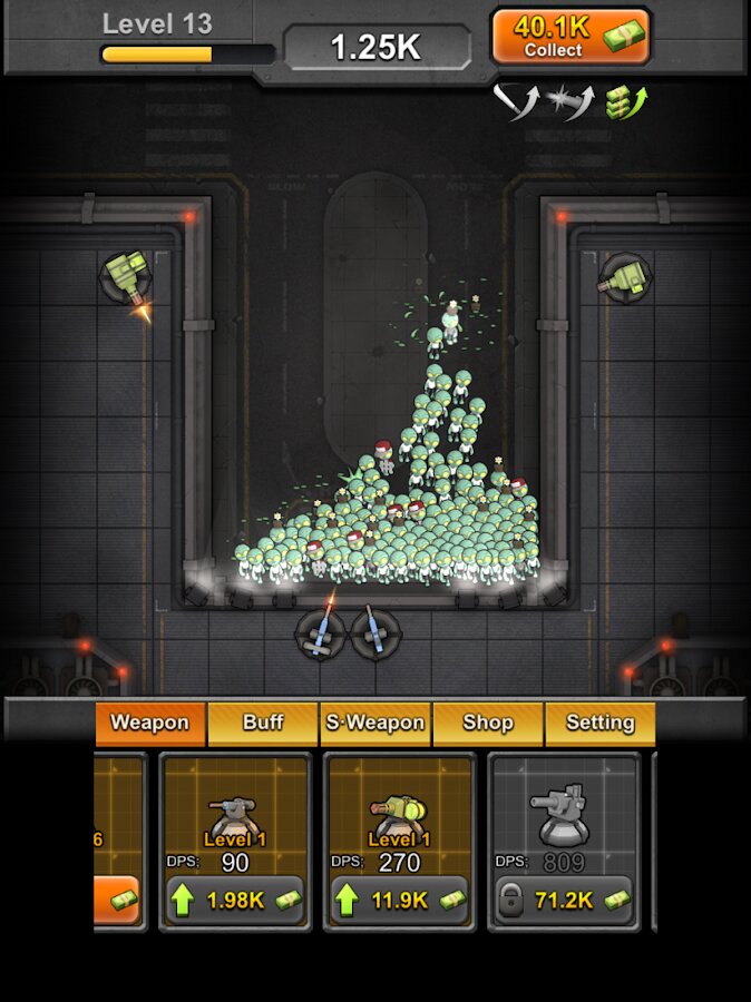 Для начала, вам придется ограничиваться малым, и просто расстреливать их турелями. Но позже, когда вы уже освоитесь в игре, вам будут доступны многие другие виды оружия, к примеру, вы можете установить огромную циркулярную пилу, которая будет перемалывать всех зомби в кашу.