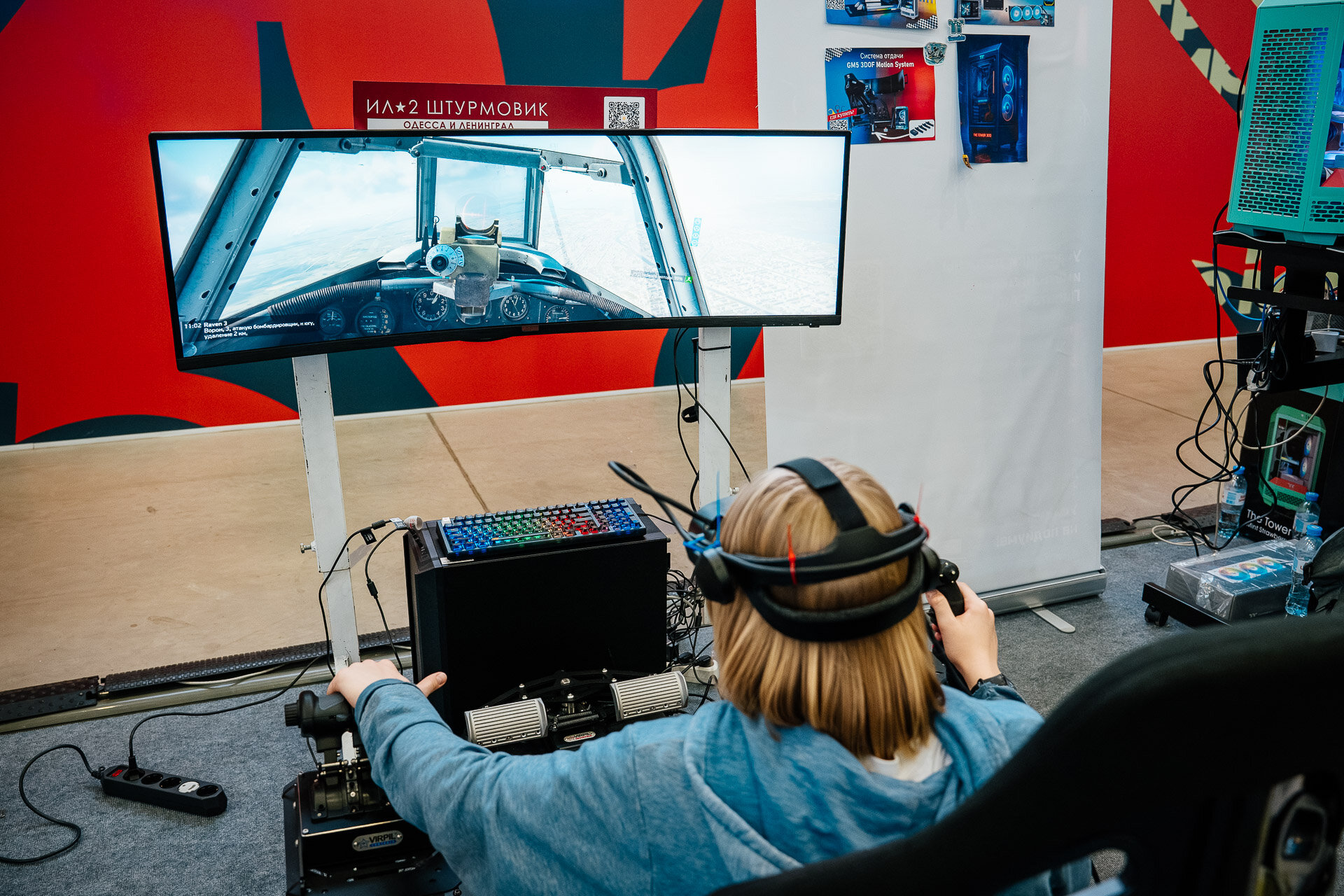 А на стенде «ИЛ-2 Штурмовик» можно было от первого лица сесть за штурвал истребителя — тоже со шлемом виртуальной реальности. Правда, управиться с летательным аппаратом при помощи традиционных элементов управления — задача не из простых. С другой стороны, можно было сразу определить хардкорных фанатов проекта — некоторые летали на уровне асов.