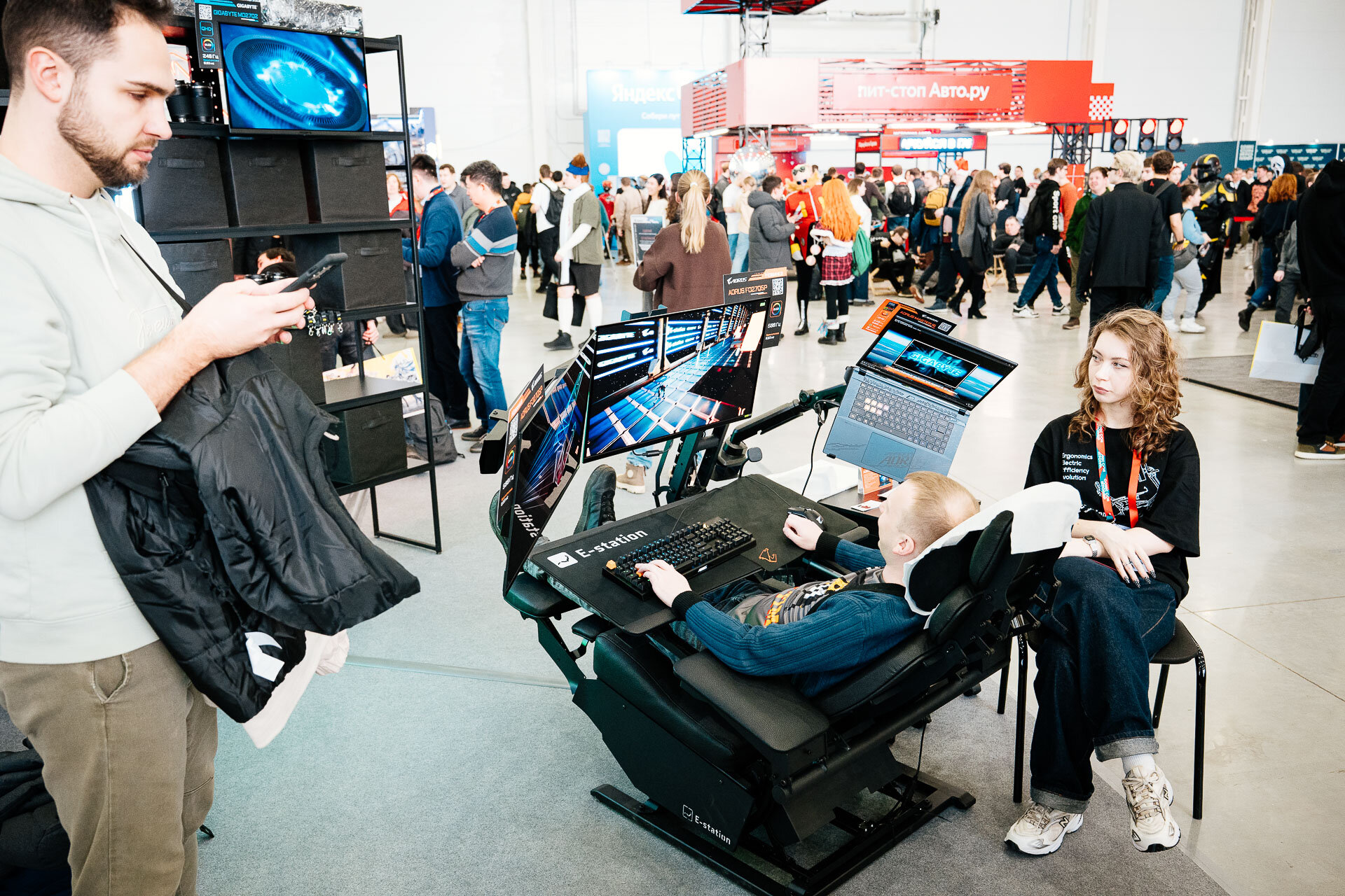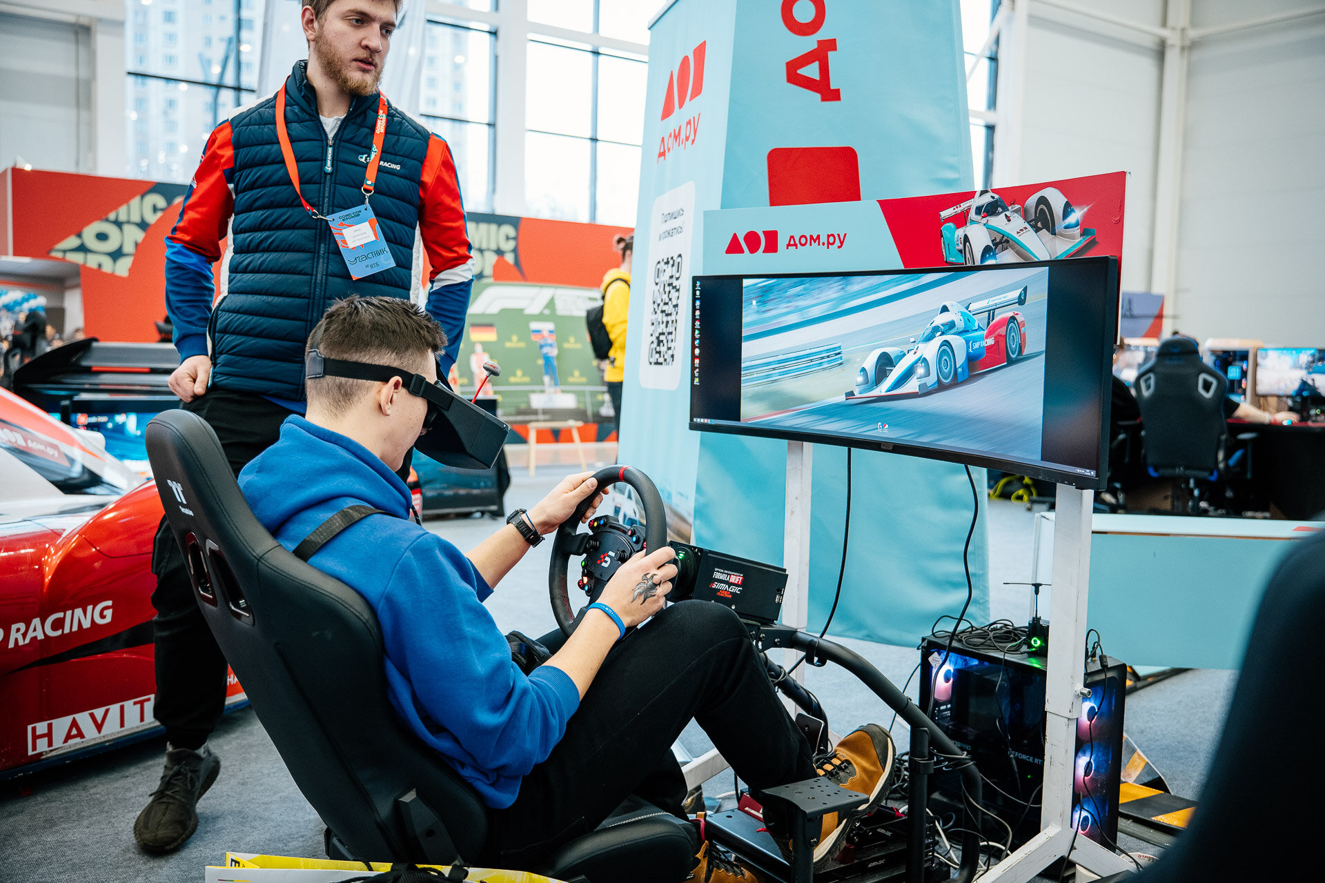 Конечно, помимо больших сцен со спикерами, стендов разработчиков, издателей и представителей СМИ на «Игромире» были и локации с интерактивными развлечениями, которые, судя по количеству людей рядом с ними, пользовались очень высоким спросом. К примеру, у стенда «Дом.ру», рядом с которым стоял полноразмерный гоночный болид, можно было попробовать себя в роли настоящего гонщика с видом от первого лица — там стоял стенд с рулём, гоночным креслом-ковшом, педалями и шлемом виртуальной реальности. Для тех, кто увлекается мотоспортом, — самое то.