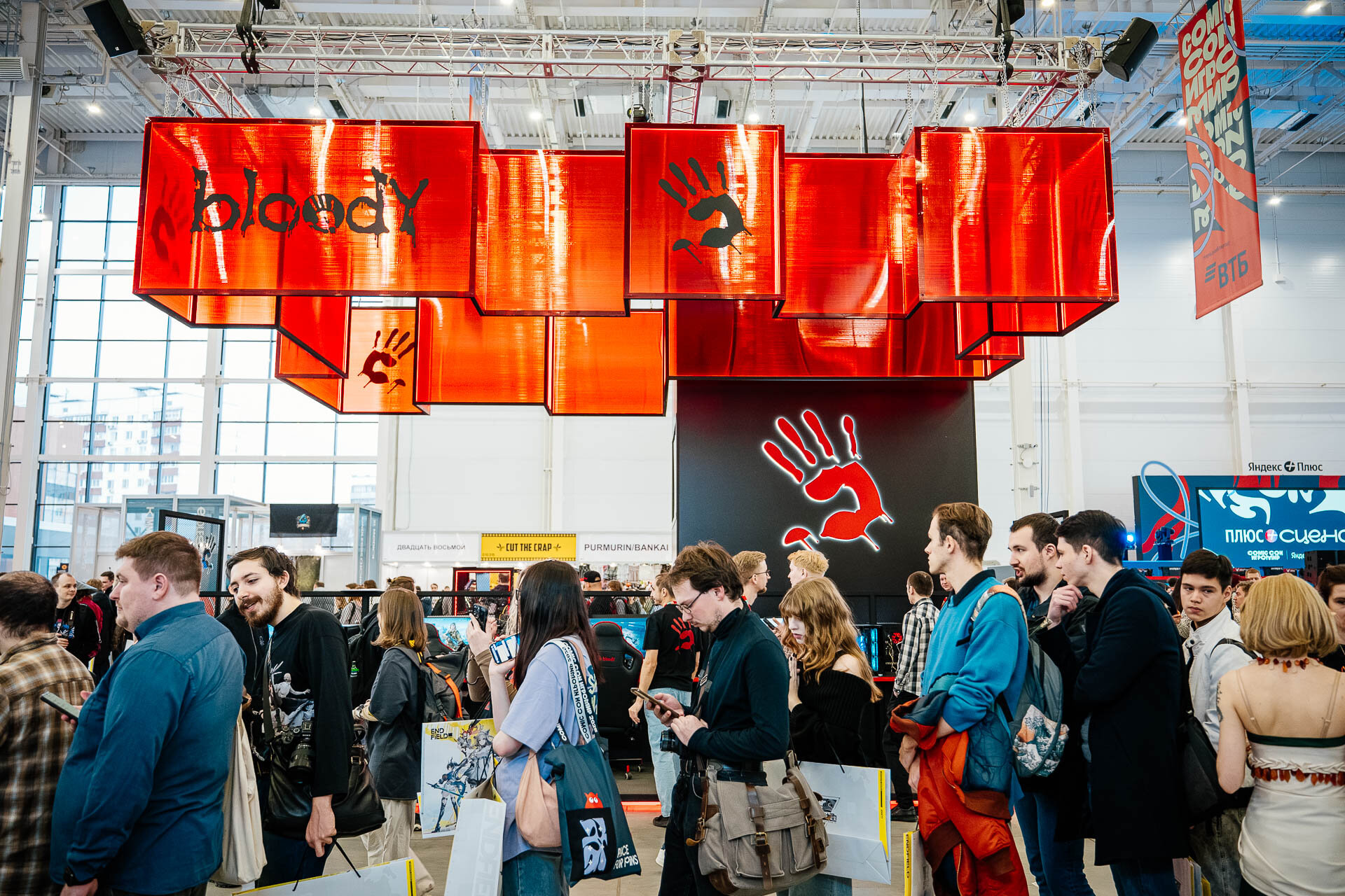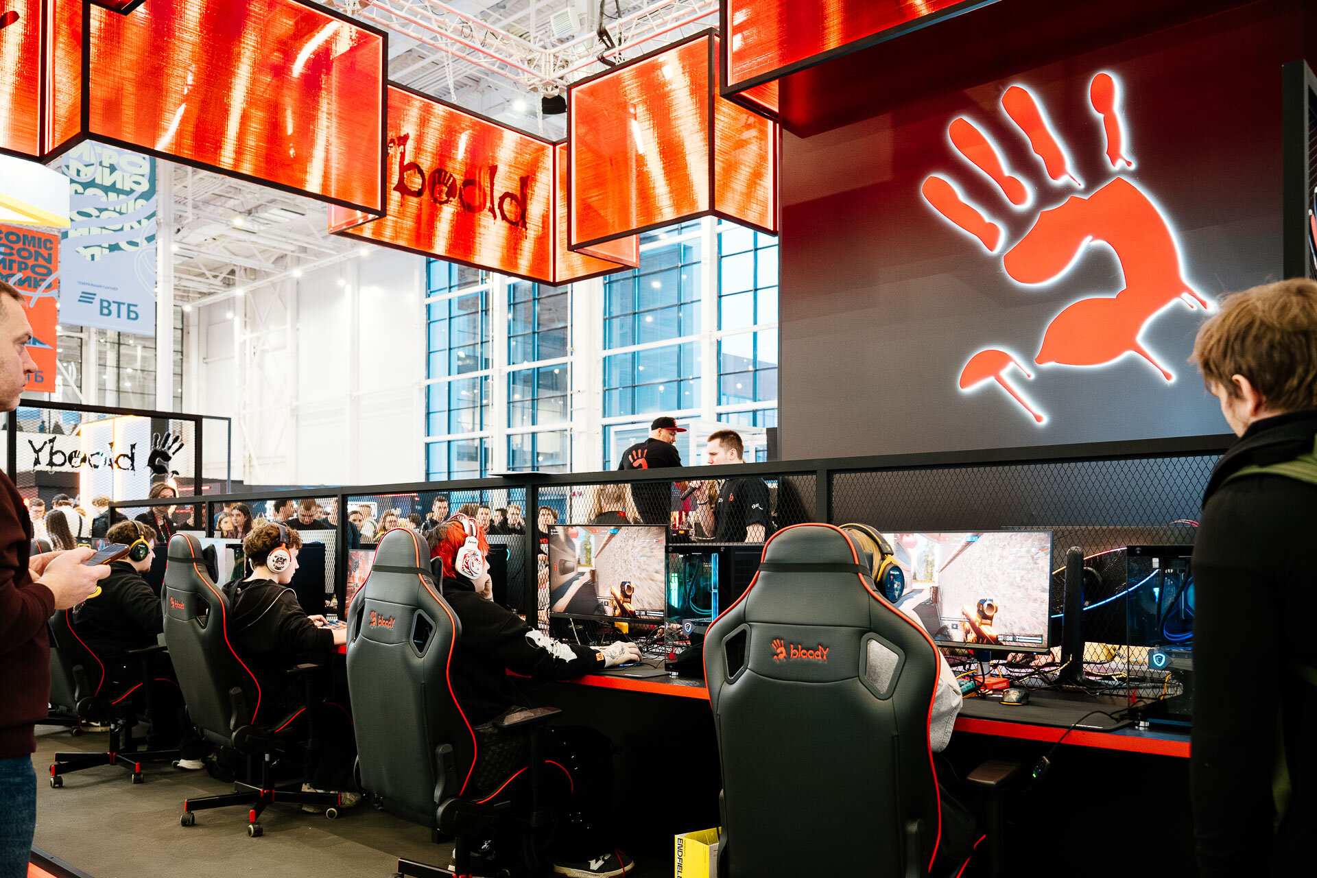 Особое внимание привлёк стенд компании Bloody — и дело не только в ярко-красной вывеске, размахе платформы и симпатичных девушках в тематических костюмах, но и в количестве различного рода продукции бренда, которую можно было потрогать вживую. Здесь были кресла, клавиатуры, мышки, гарнитуры, ковры и даже мониторы с фирменным логотипом — можно было сесть, поиграть и прочувствовать качество того или иного устройства. И, судя по количеству людей вокруг стенда, многим это было действительно интересно.