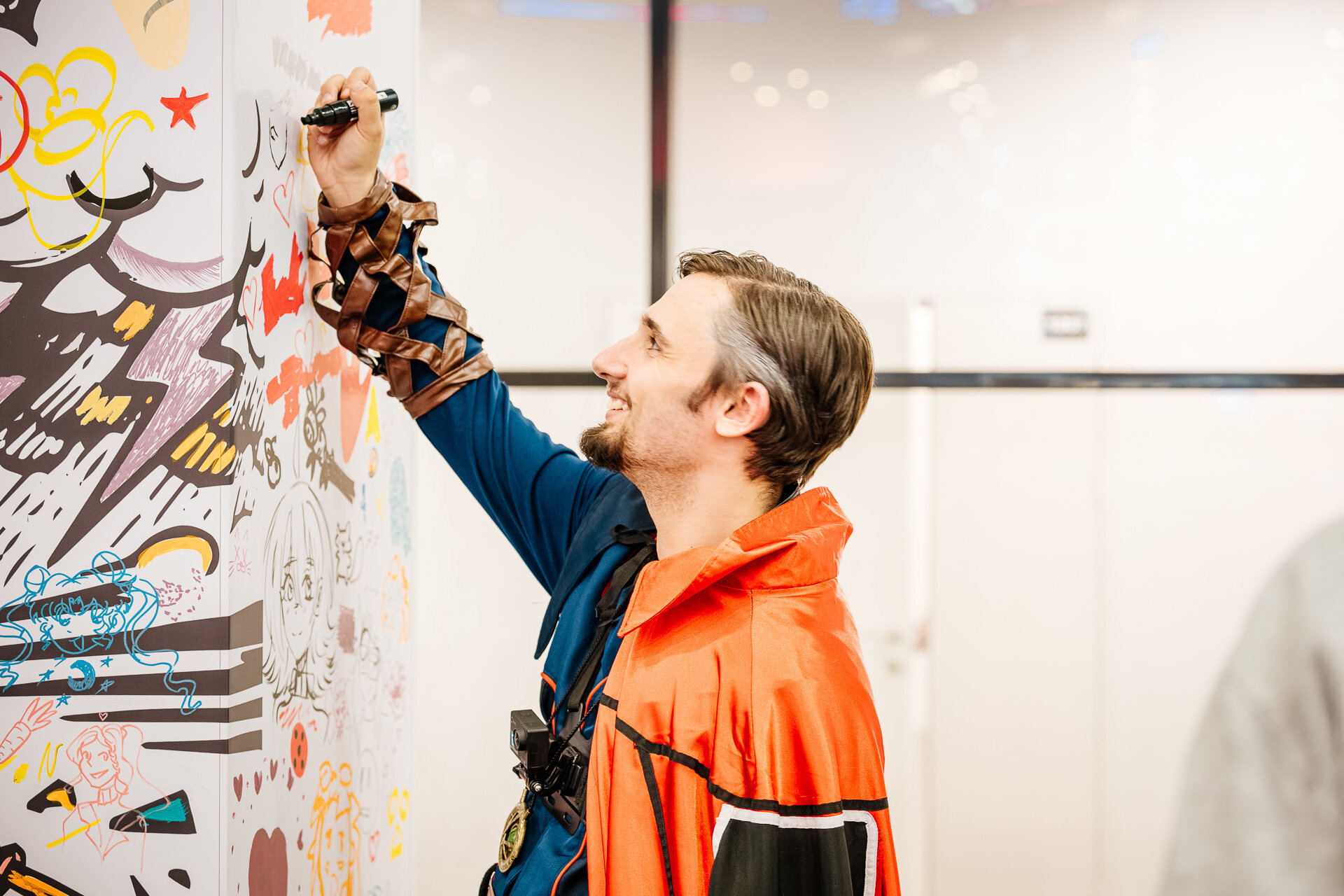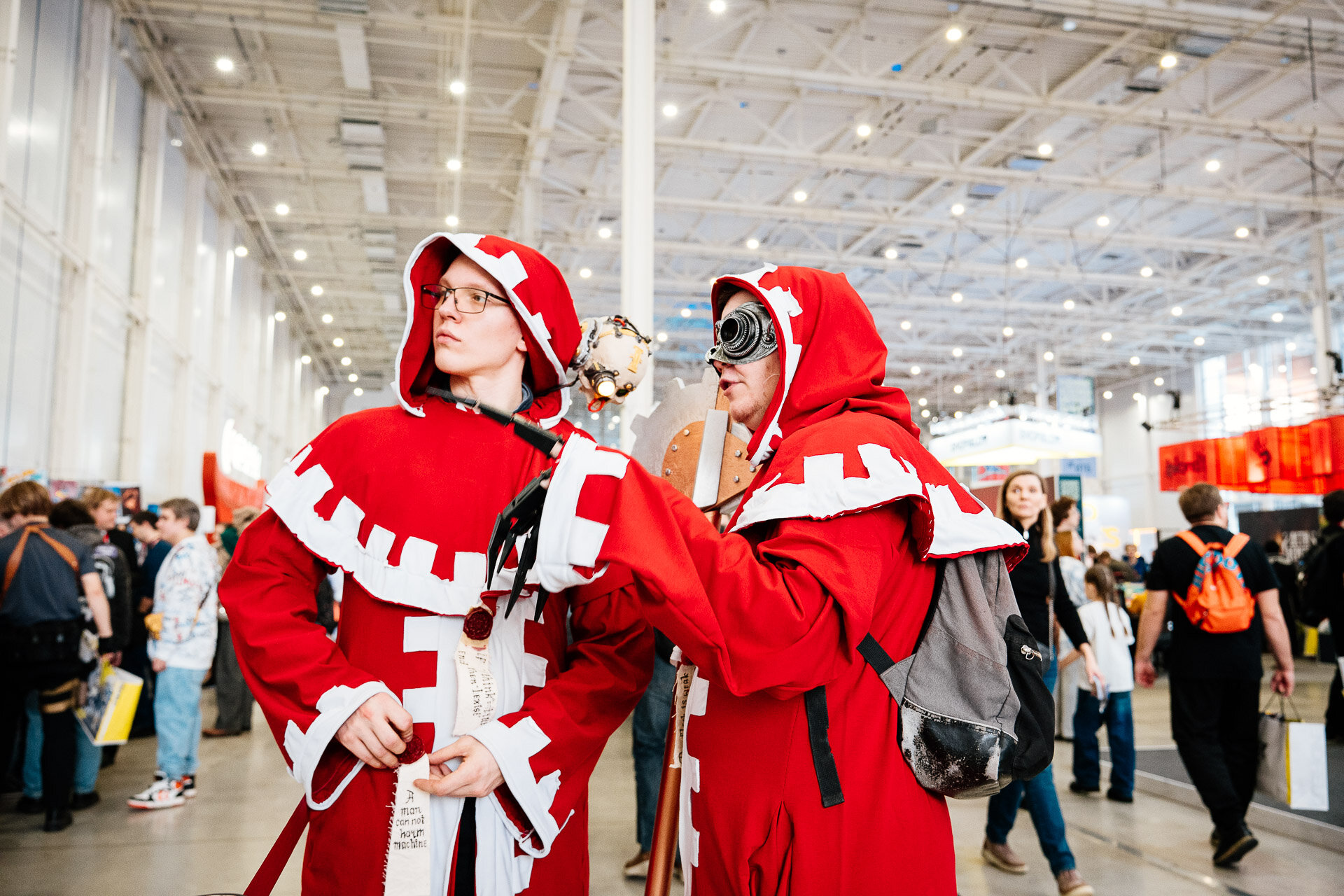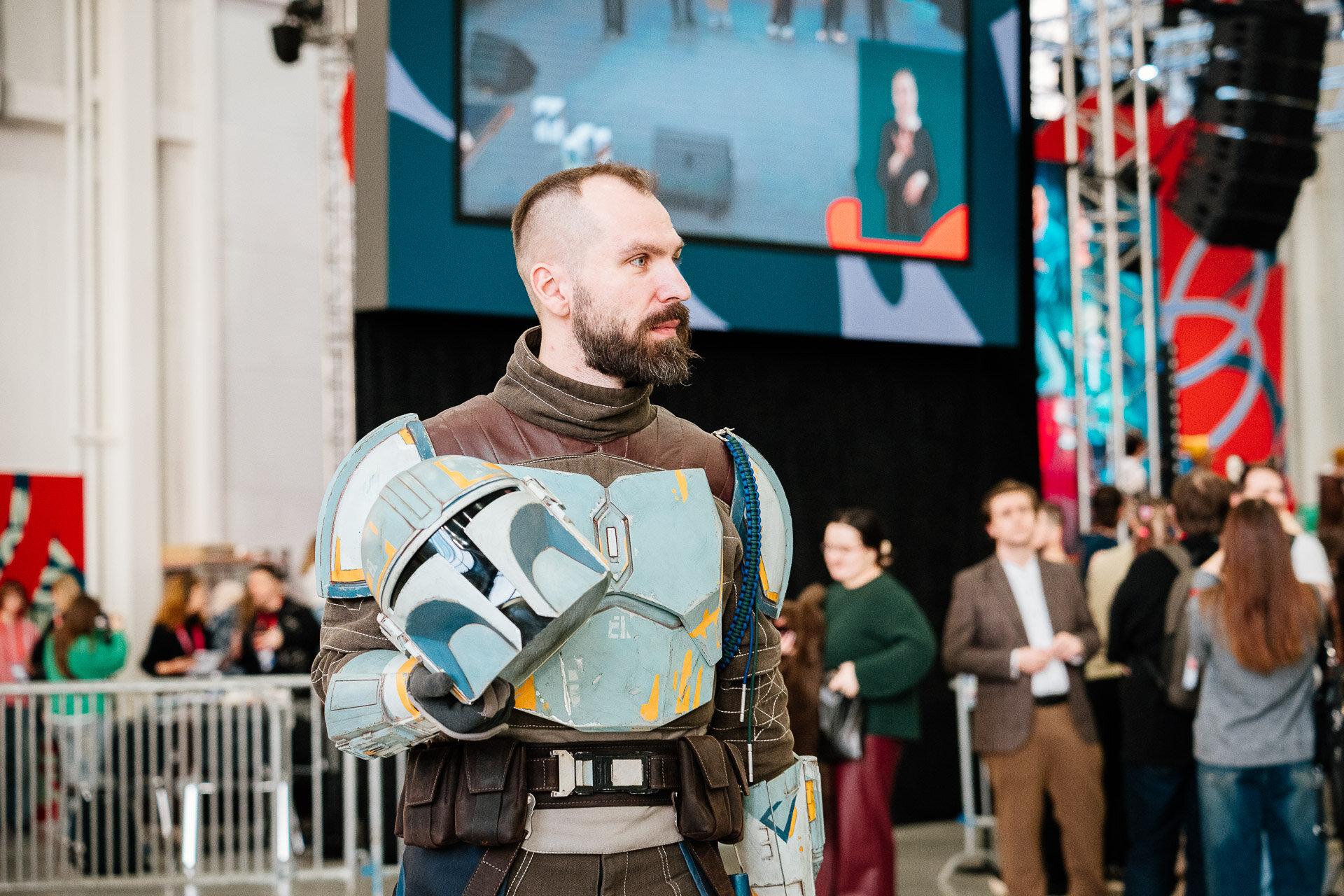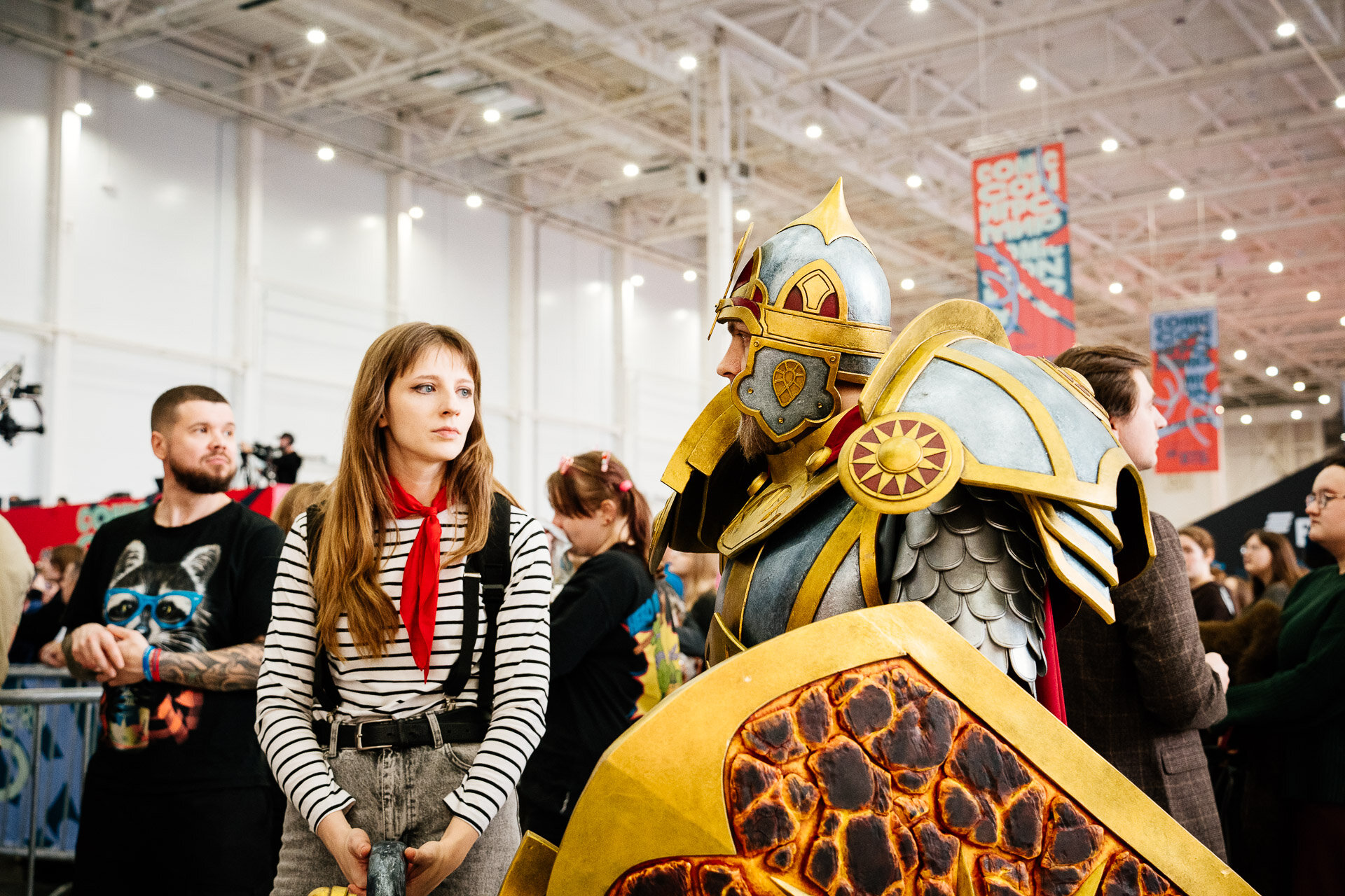 В этом году «Игромир», совмещённый с Comic Con, проводили в «Тимирязев Центре» — довольно большом выставочном здании, внутри которого экспозицию разделили на три отдельных зала. И, как это обычно бывает, очередь из желающих первыми пробраться на мероприятие можно было заметить издалека — многие фанаты поп-культуры, несмотря на довольно низкую температуру и местами сильный ветер, заняли своё место в потоке за несколько часов до открытия. В социальных сетях даже видел посты о том, что кто-то приехал в шесть утра, чтобы быть одним из первых.