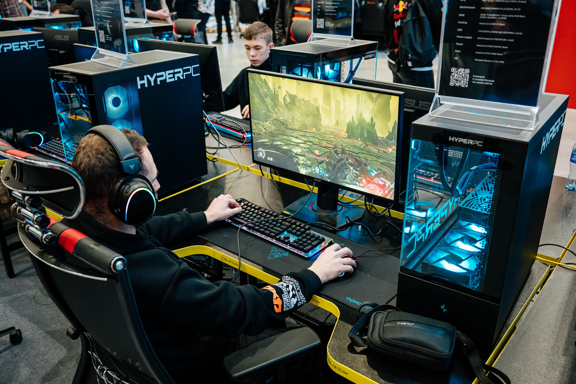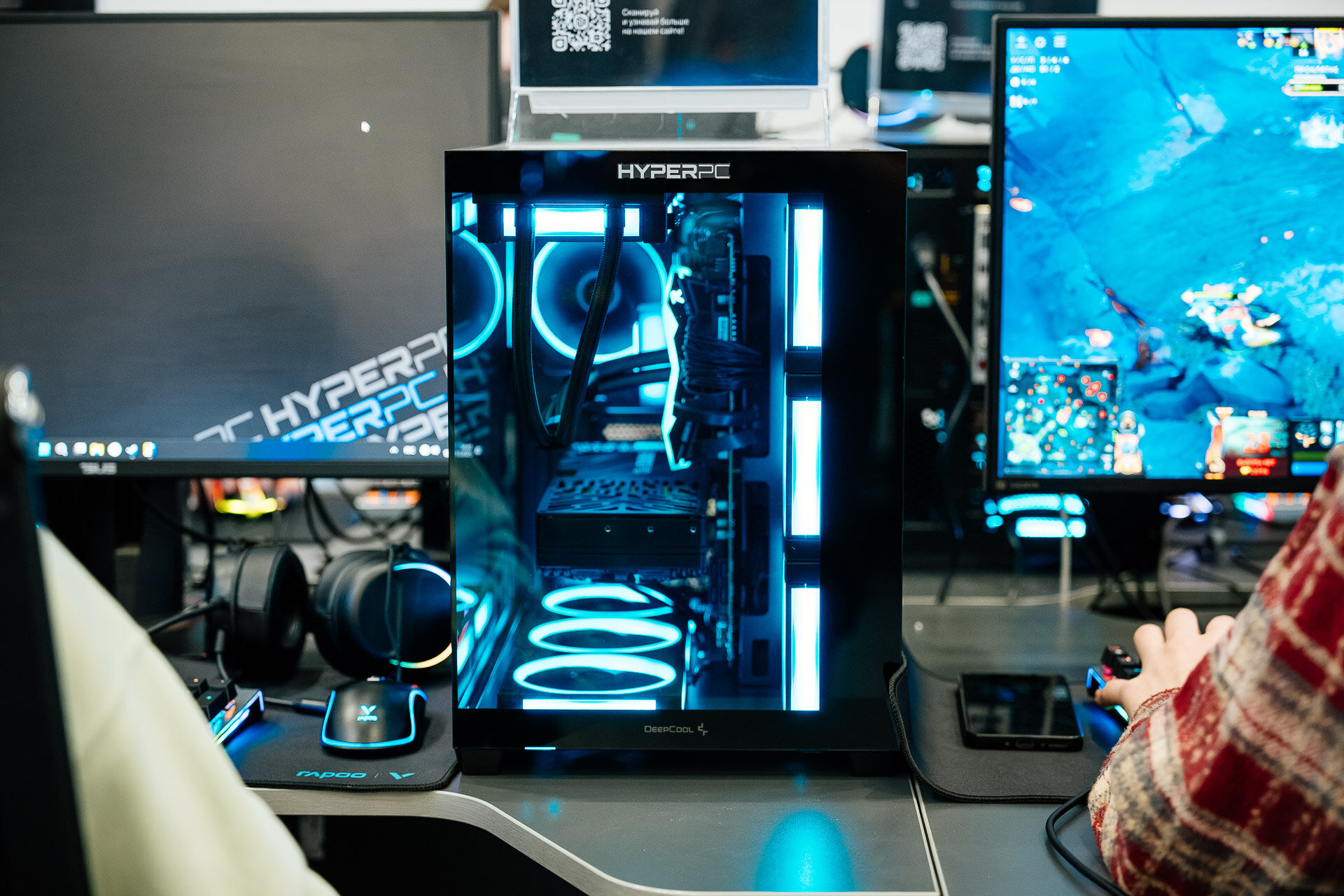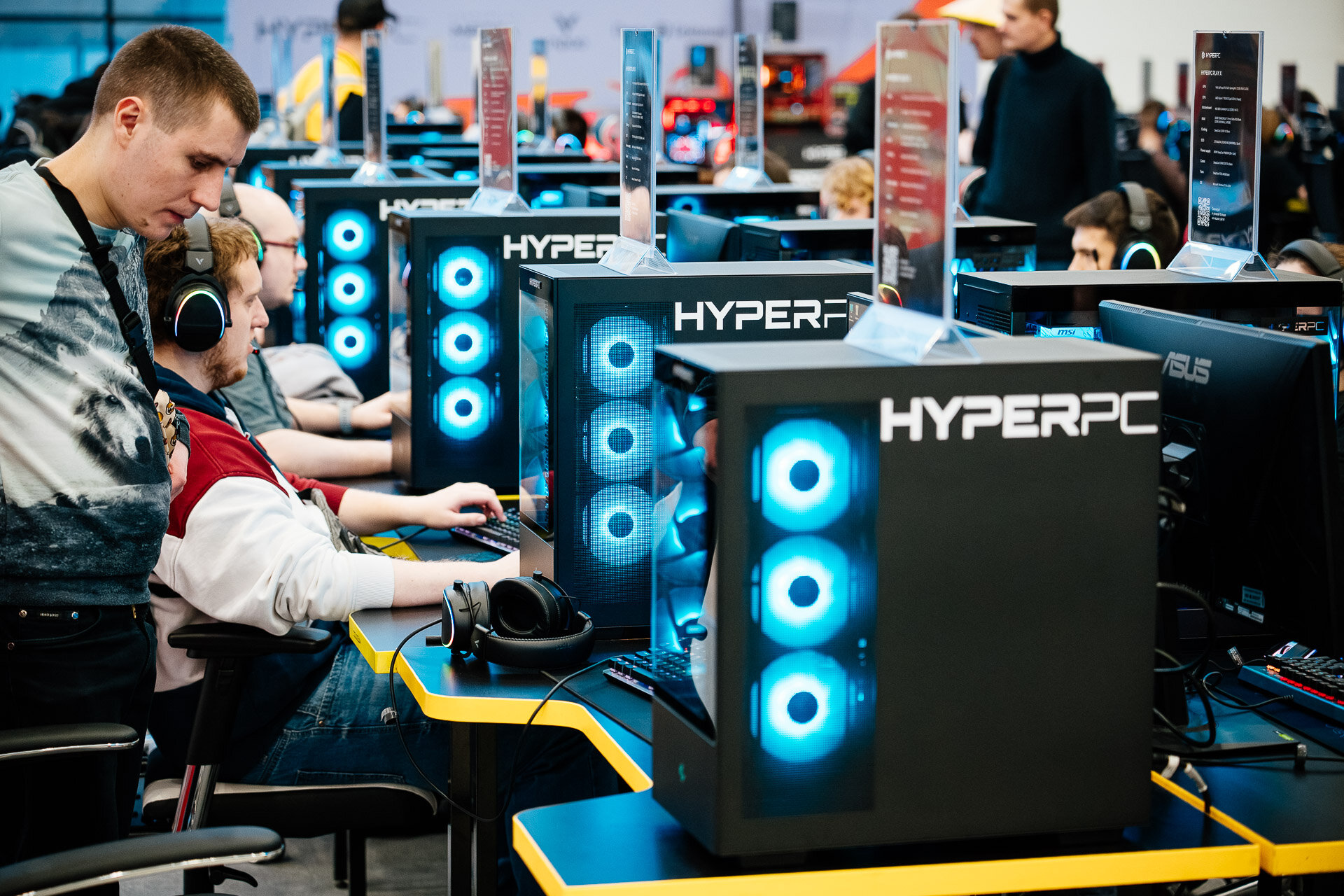 Ещё хотелось бы сказать, что сетапов для времяпрепровождения в виртуальных мирах на выставке было очень много — компьютеры (довольно примечательно, что львиная доля ПК на мероприятии была представлена брендом HyperPC — их системы стояли практически везде) были расставлены как на стендах разработчиков различных проектов, так и в отдельных игровых зонах в четвёртом зале. И, конечно, желающих поиграть в любимый тайтл на мощном железе, да ещё и в атмосфере столь масштабного мероприятия, было немало.