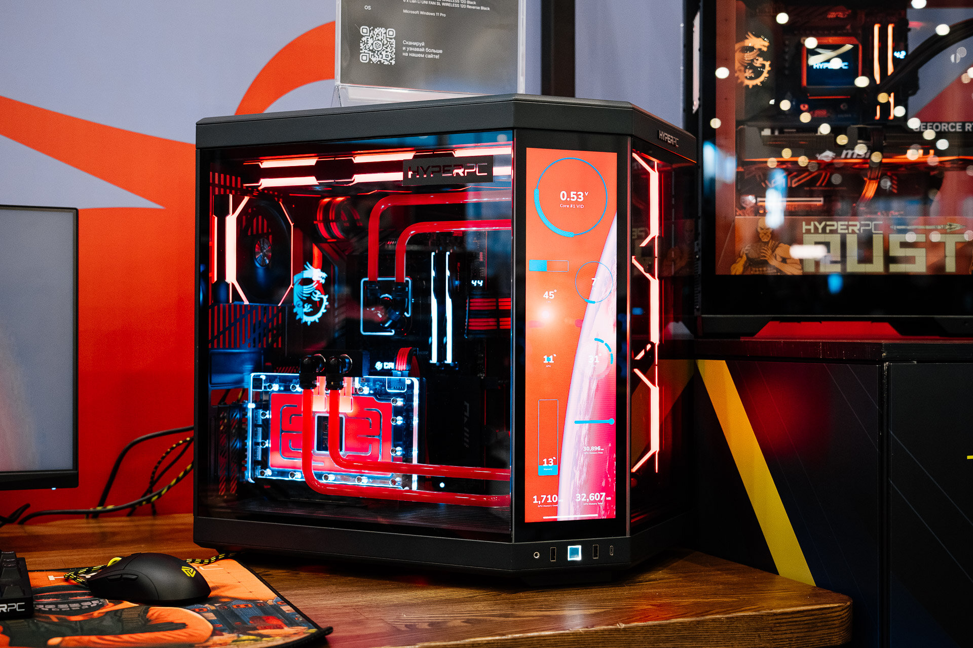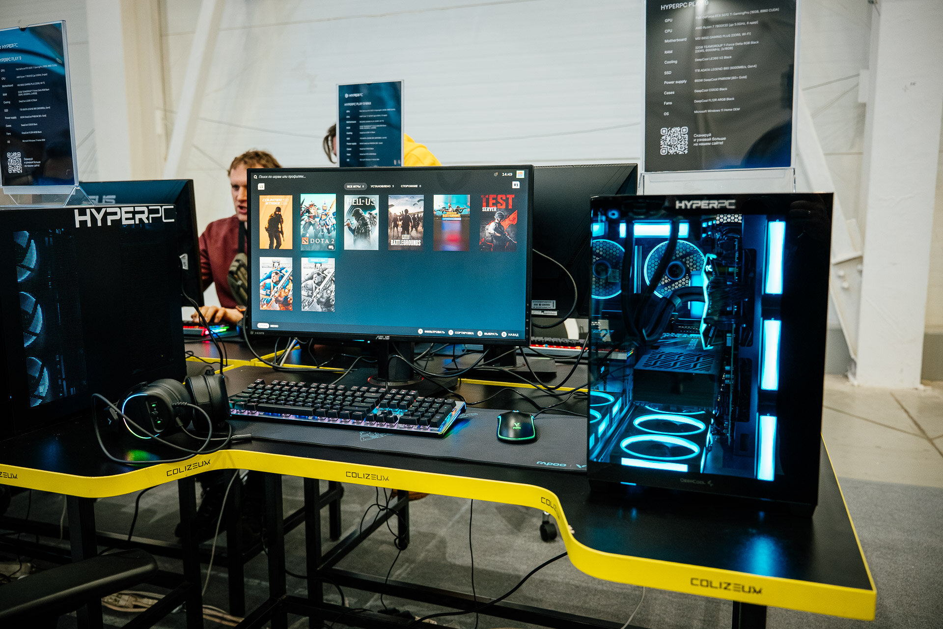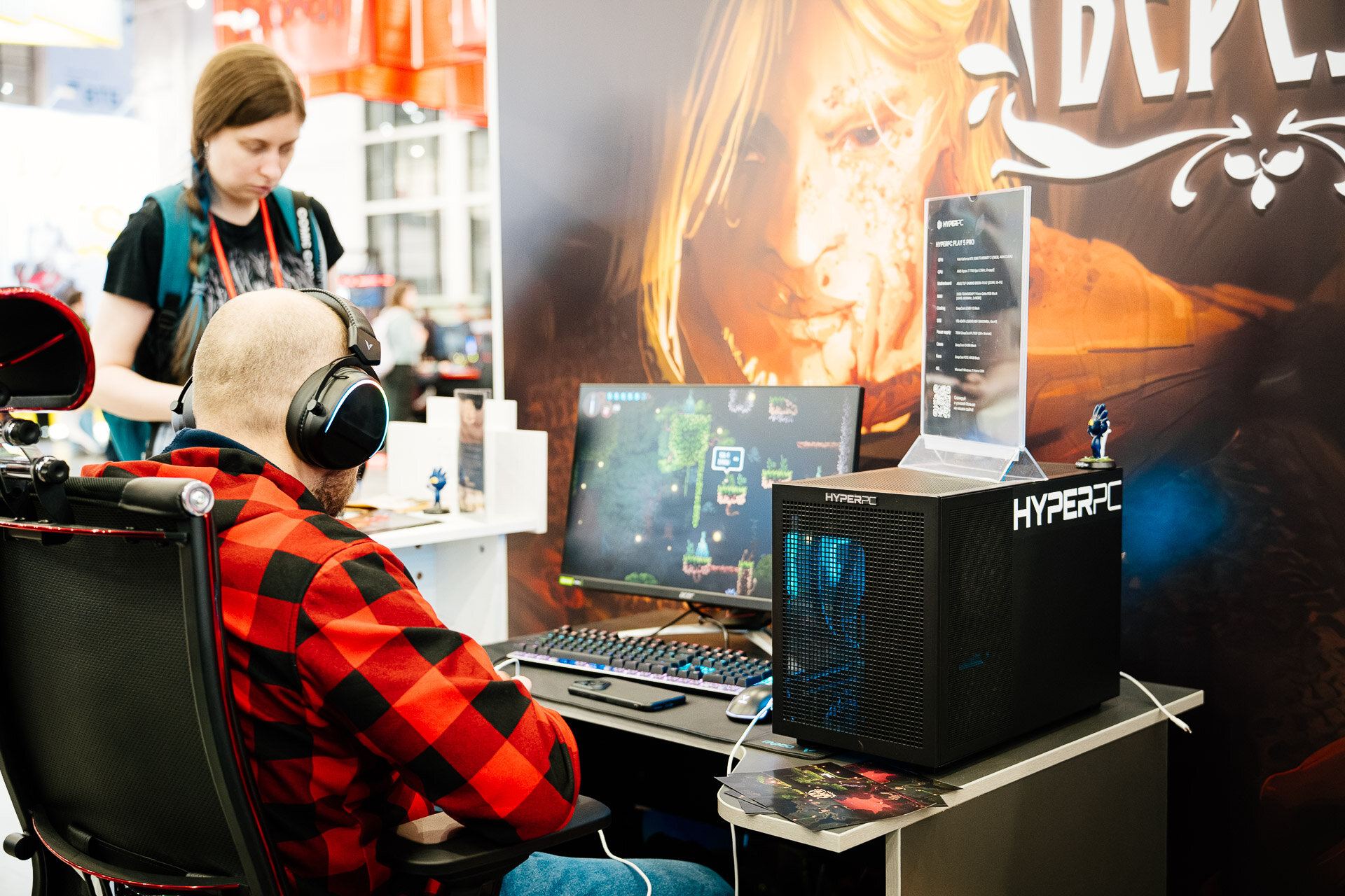 Ещё хотелось бы сказать, что сетапов для времяпрепровождения в виртуальных мирах на выставке было очень много — компьютеры (довольно примечательно, что львиная доля ПК на мероприятии была представлена брендом HyperPC — их системы стояли практически везде) были расставлены как на стендах разработчиков различных проектов, так и в отдельных игровых зонах в четвёртом зале. И, конечно, желающих поиграть в любимый тайтл на мощном железе, да ещё и в атмосфере столь масштабного мероприятия, было немало.