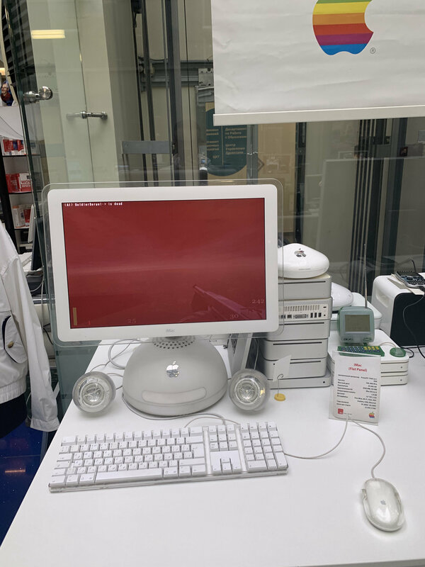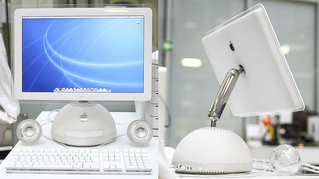 Сказано — сделано. Вот он, iMac G4, который до сих пор удивляет ценителей и украшает коллекции винтажной компьютерной техники. У него был действительно большой для того времени дисплей, который крепился к стальному поворотному механизму — создавалось ощущение, что монитор буквально парил в воздухе.