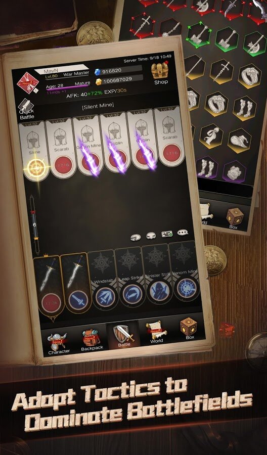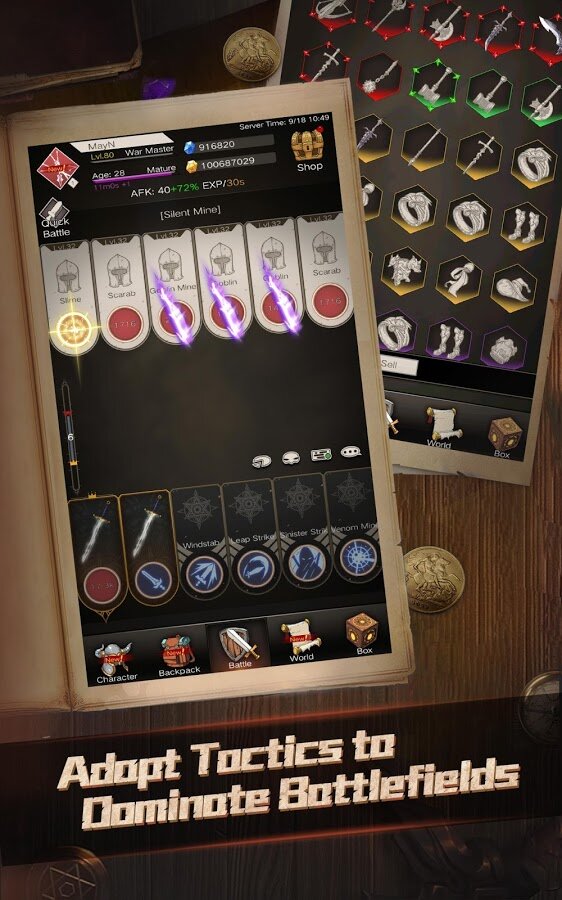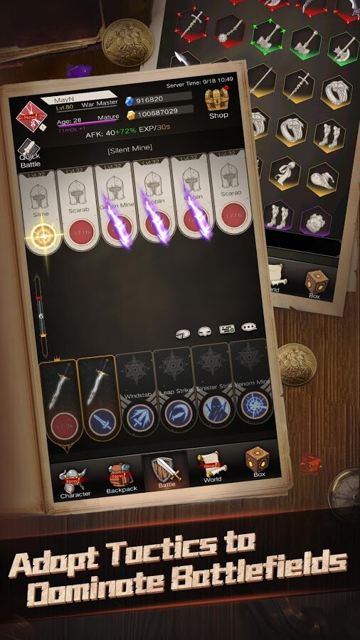 Также вы можете добывать полезные ресурсы в режиме AFK, чтобы в будущем усиливать своих воинов и их снаряжение. Чтобы разнообразить свою боевую мощь в походах на эпических боссов вы можете обратиться за помощью к команде из других игроков. Играйте и побеждайте вместе!