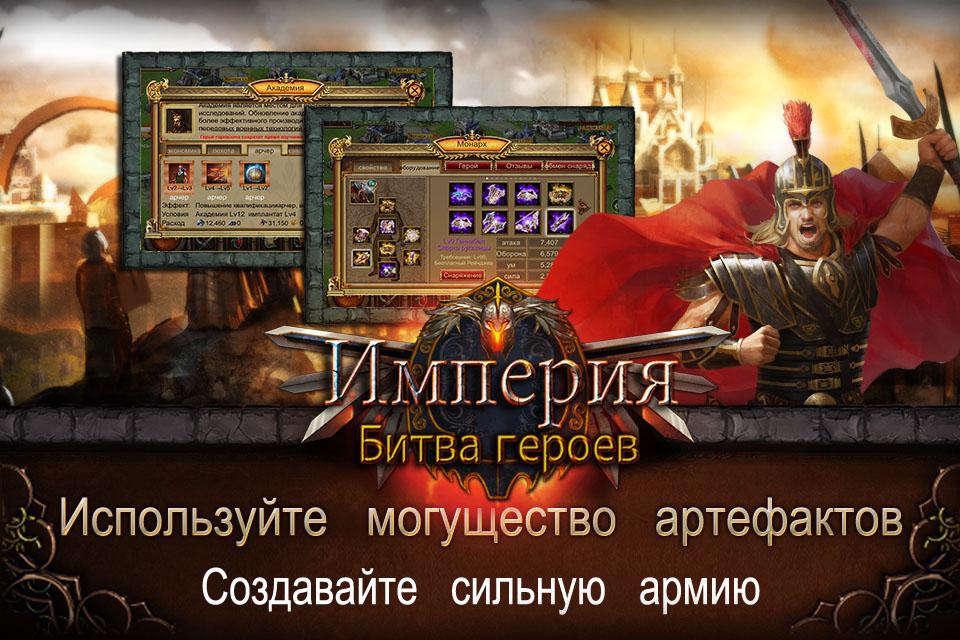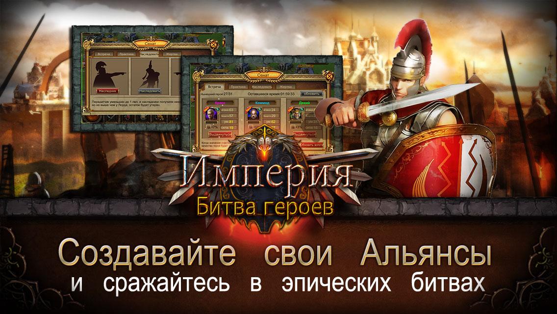 Империя: Битва героев — это игра которая вернет Вас во времена Древнего Рима, на территории которого вы будете играть монарха, расширяющего свою территорию, отправляя свои войска на поля битвы или создавая с другими героями альянсы!