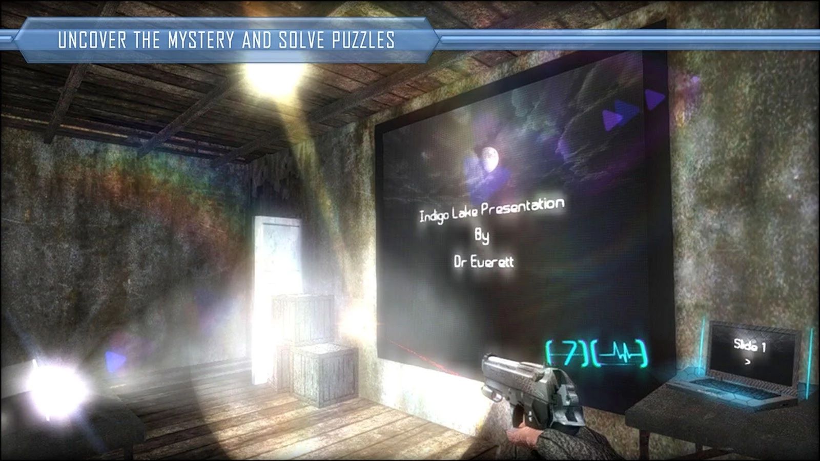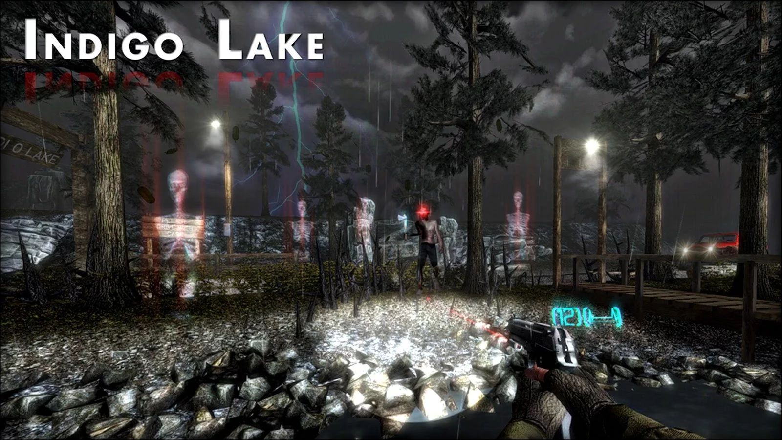 Как уже было сказано, в хорроре Indigo Lake реализован открытый мир, поэтому исследовать окрестности жуткого озера можно по своему усмотрению. Открытых для исследования территорий в игре действительно много. По окрестностям озера можно передвигаться на машине. В арсенале главного героя — пистолет и фонарик. Игроку предстоит разгадать тайны, которые оставили коренные жители Америки и найти пропавшего агента.