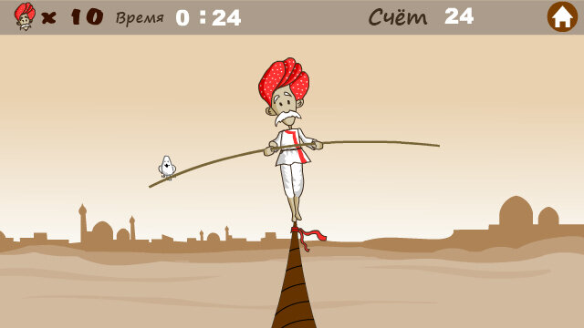 Вам предстоит пройти как можно большее расстояние по канату над пропастью. Самое главное в игре — удерживать баланс. Но не всё так просто! Надоедливые птички и ветер будут Вам всячески мешать…