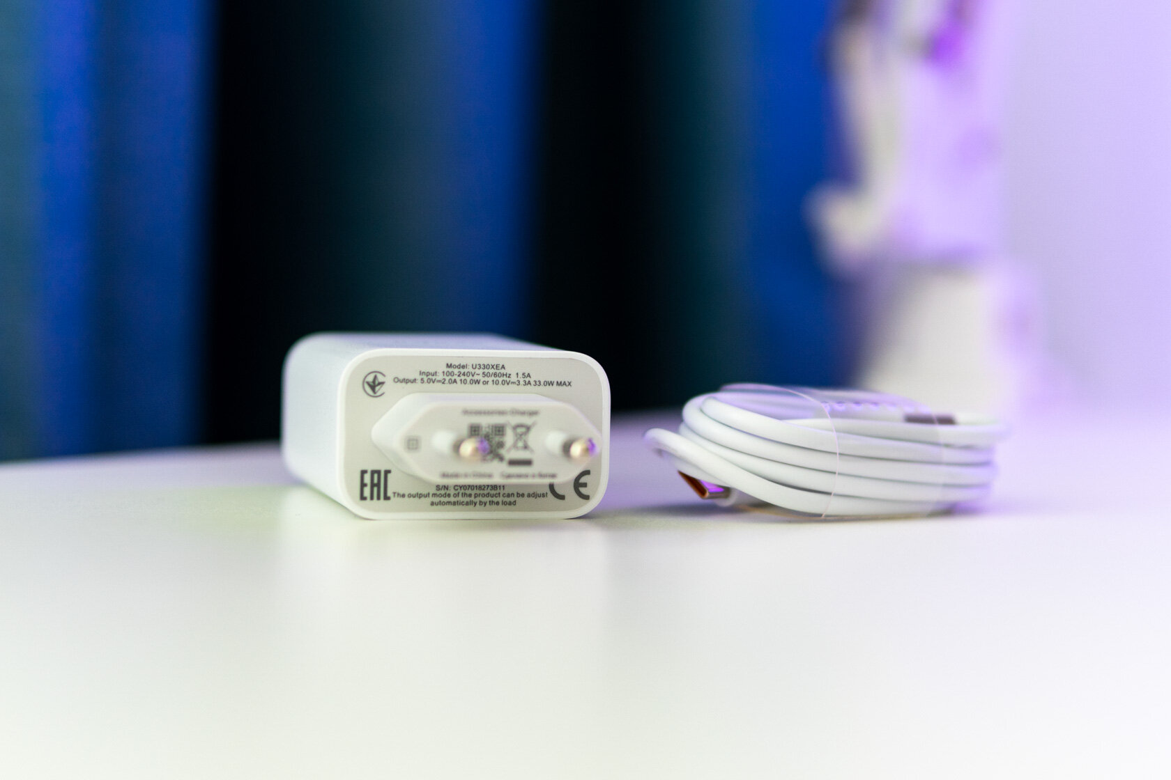 Зарядка на 33 Вт полностью наполняет аккумулятор за полтора часа. Штатный адаптер с полноразмерным USB не маленький по сегодняшним меркам. Благо носить его повсюду для быстрой зарядки не нужно. Смартфон в равной степени поддерживает и Power Delivery, и Qualcomm Quick Charge 2.
