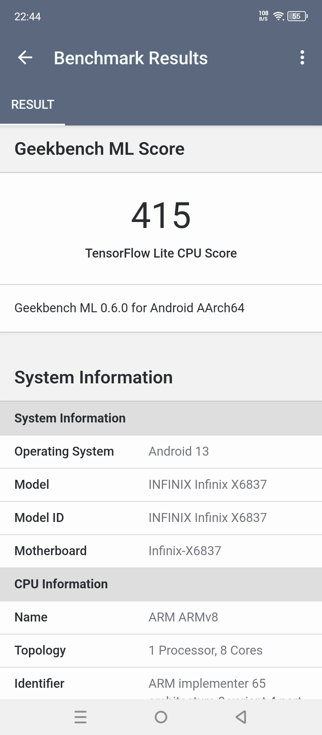 - CPU: Cortex-A76 (2 × 2,2 ГГц) + Cortex-A55 (6 × 2,0 ГГц).