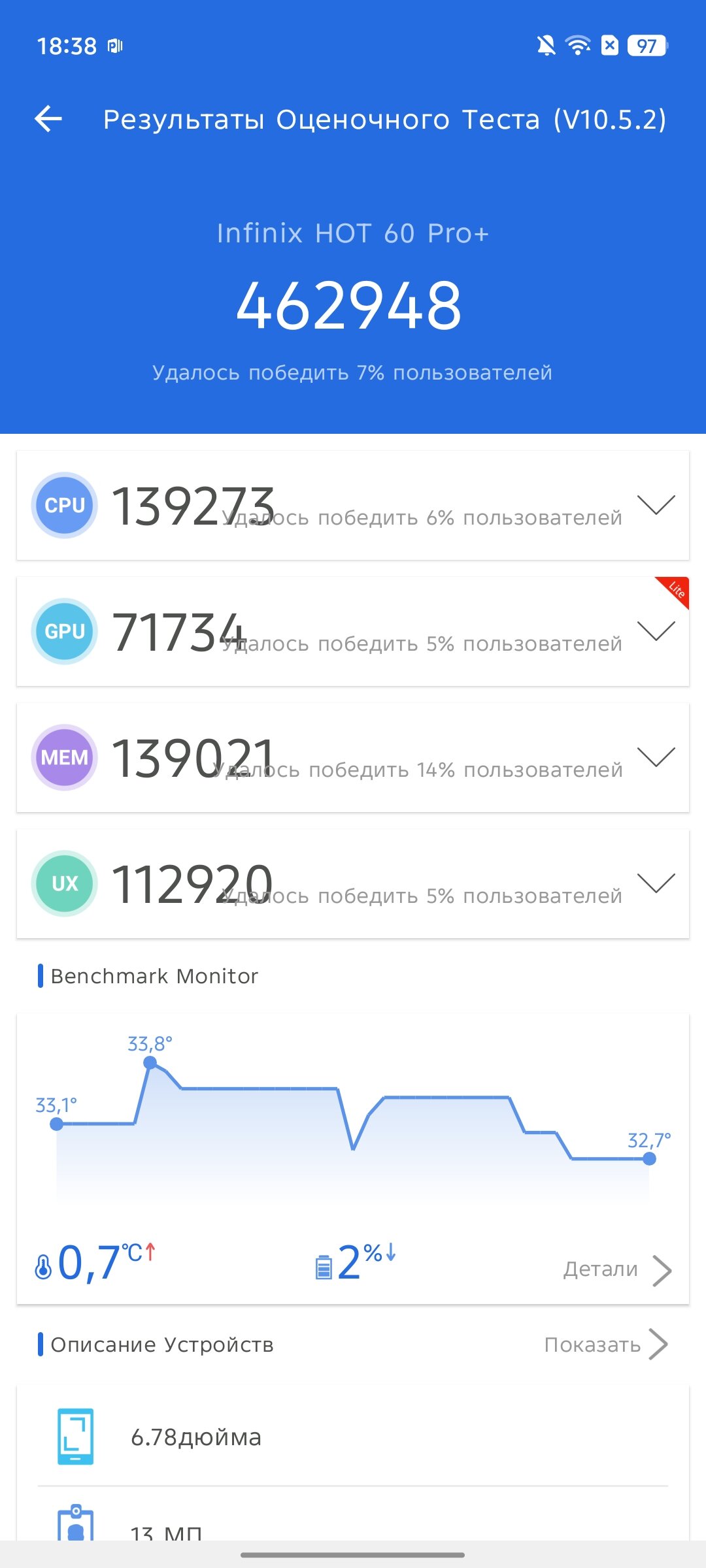 Более того, процессор хотя и не является флагманским чипом, поиграть на Infinix HOT 60 Pro+ в мобильные игры всё же можно. Просто необходимо учитывать, что речь идёт о смартфоне с бюджетным процессором, так что ждать от него максимальных или хотя бы средних настроек графики в требовательных ААА-тайтлах с объёмной графикой не стоит. Он больше подходит для простых казуальных игр, которые не сильно нагружают графическую подсистему. Впрочем, так как смартфон не позиционируется геймерским, это явно не беда.