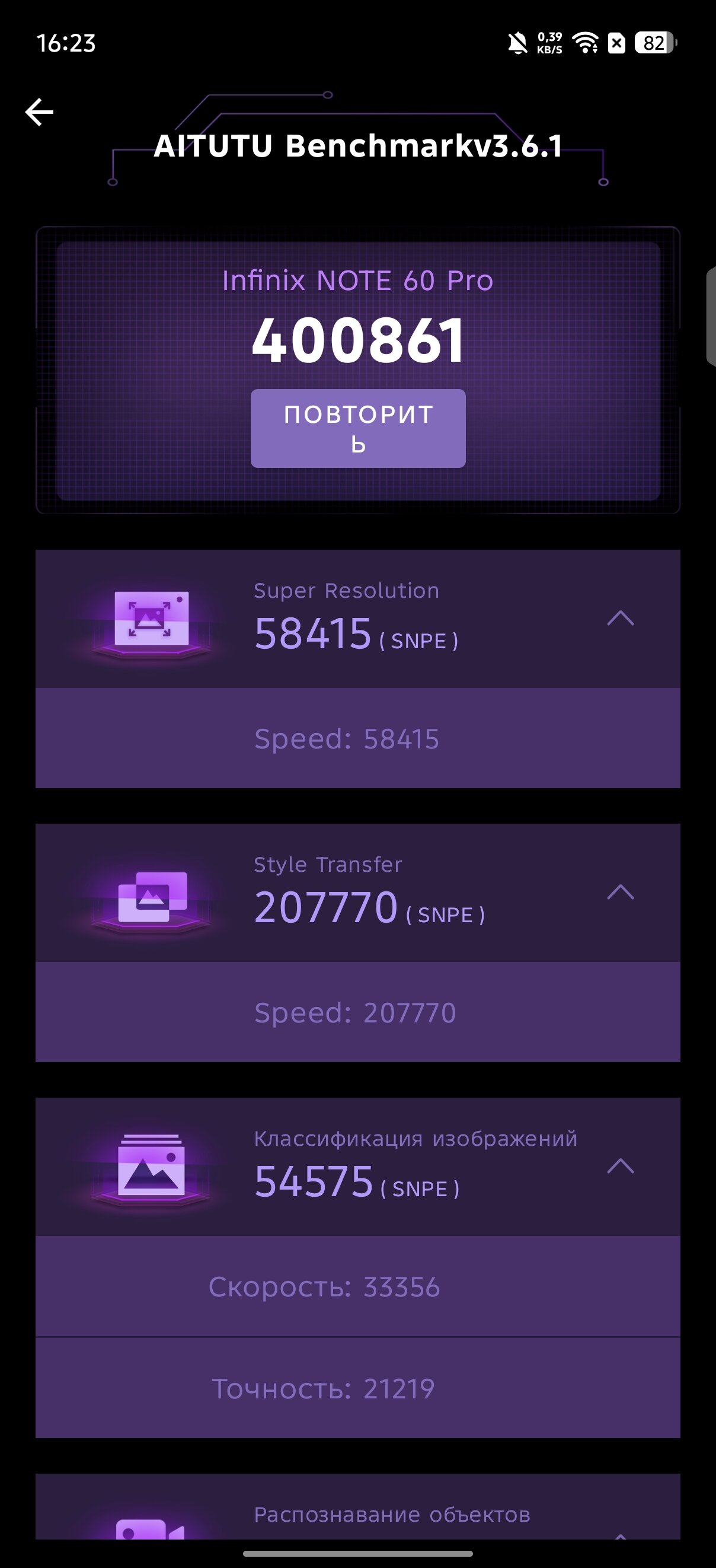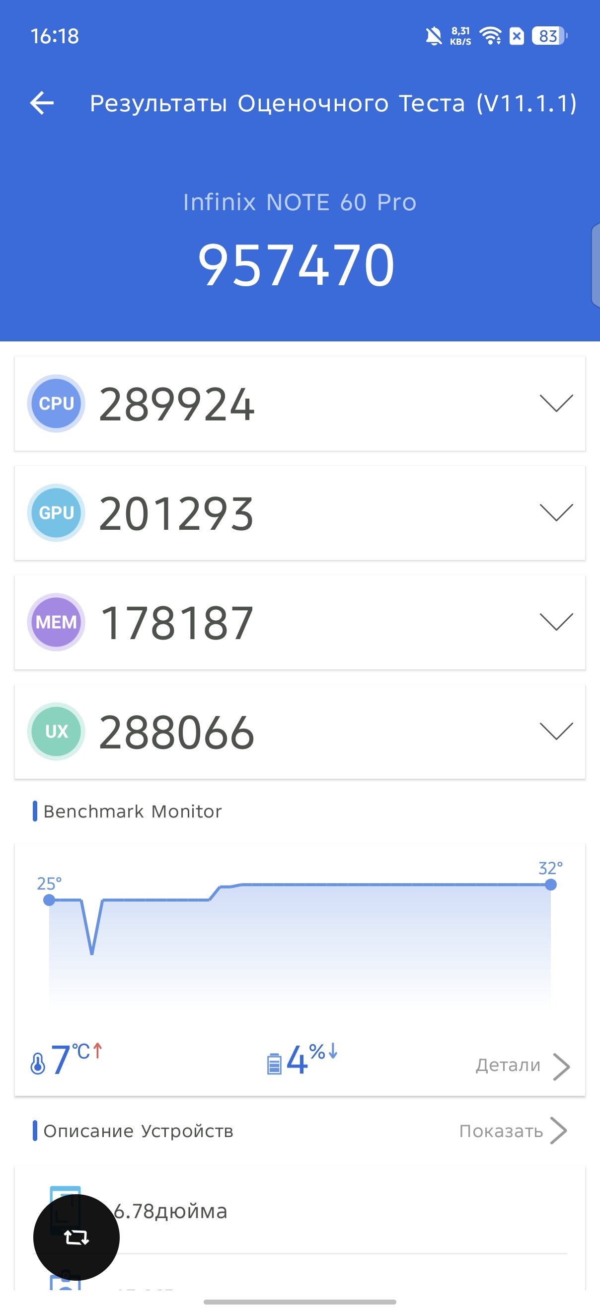 Питается Infinix NOTE 60 Pro от аккумуляторной батареи ёмкостью 6500 мАч — по современным меркам это, безусловно, не рекорд, но показатель очень даже приличный. И не только «на бумаге» — устройство демонстрирует хорошее время автономной работы, которого мне в повседневной жизни вполне хватает на двое суток эксплуатации без подзарядки. С мессенджерами, навигатором, браузером, банковским софтом и прочими базовыми приложениями гаджет можно будет заряжать всего три раза в неделю, что для многих будет огромным преимуществом.