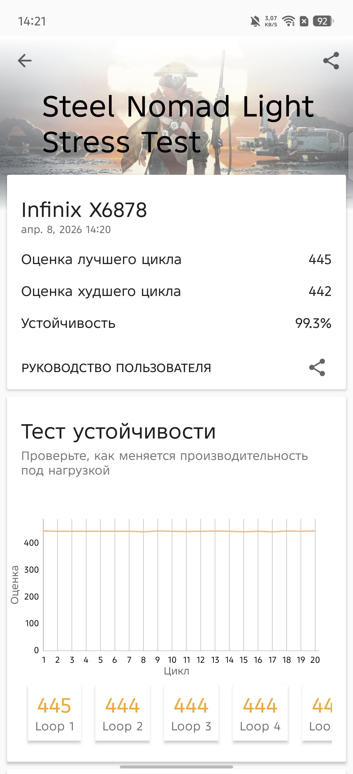 Графическая подсистема тоже показала себя очень хорошо — чип практически не растерял первоначальную производительность после прогона стресс-теста.