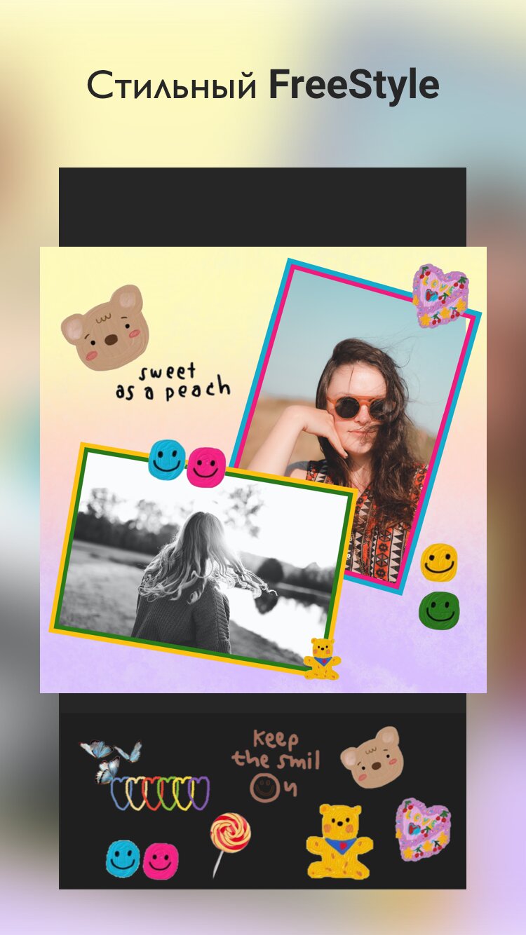 - Простой сенсорный интерфейс для легкого редактирования и создания коллажей.