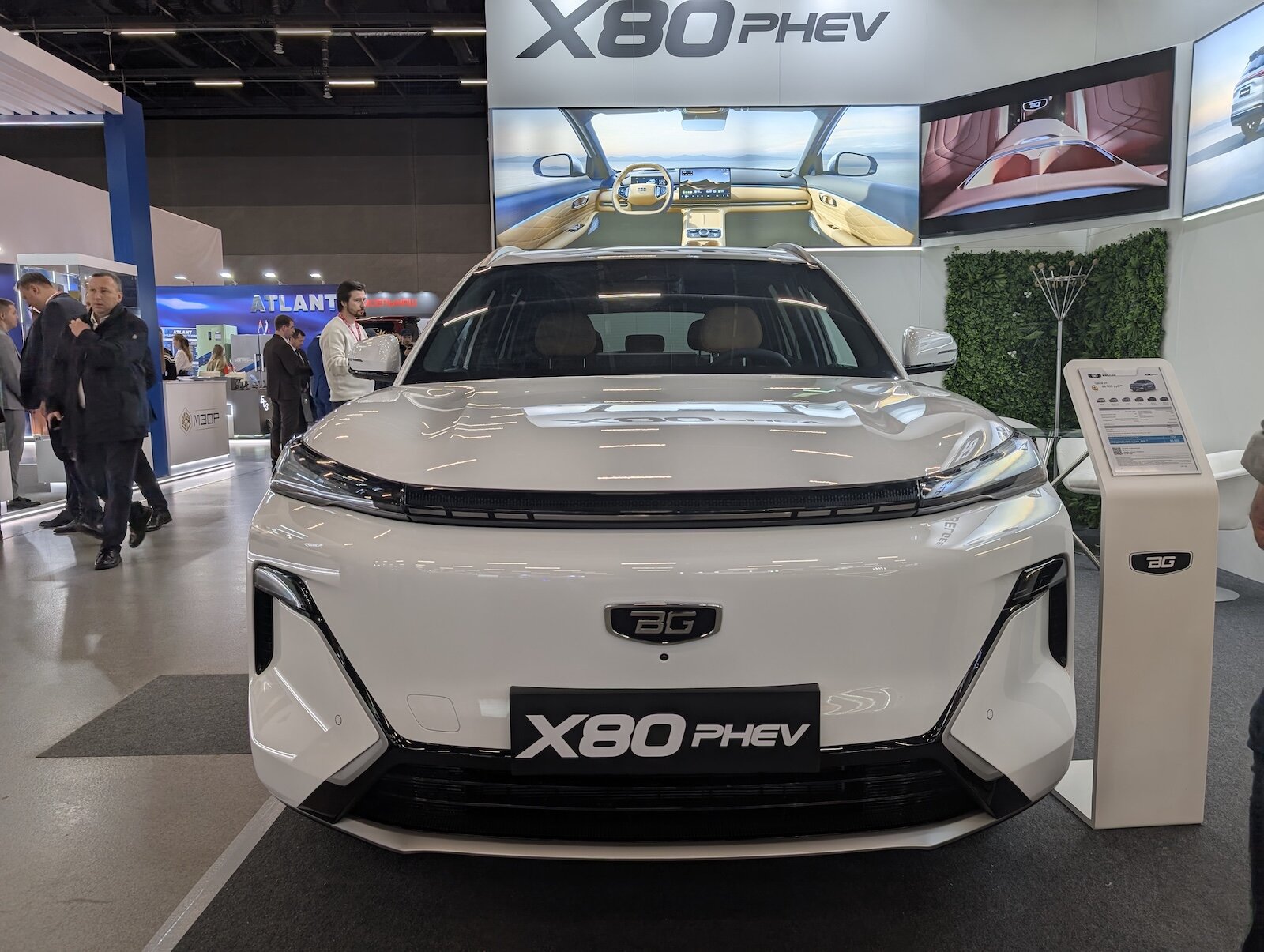 Также на выставке был замечен новый кроссовер Belgee X80 PHEV — первый кроссовер на базе гибридной силовой установки белорусского производства. В данном случае применяется последовательно-параллельный «гибрид» — под капотом расположен бензиновый мотор объёмом 1,5 литра на 99 лошадиных сил, который трудится в паре с электромотором на 218 «лошадей», передавая на переднюю ось приличную мощность.