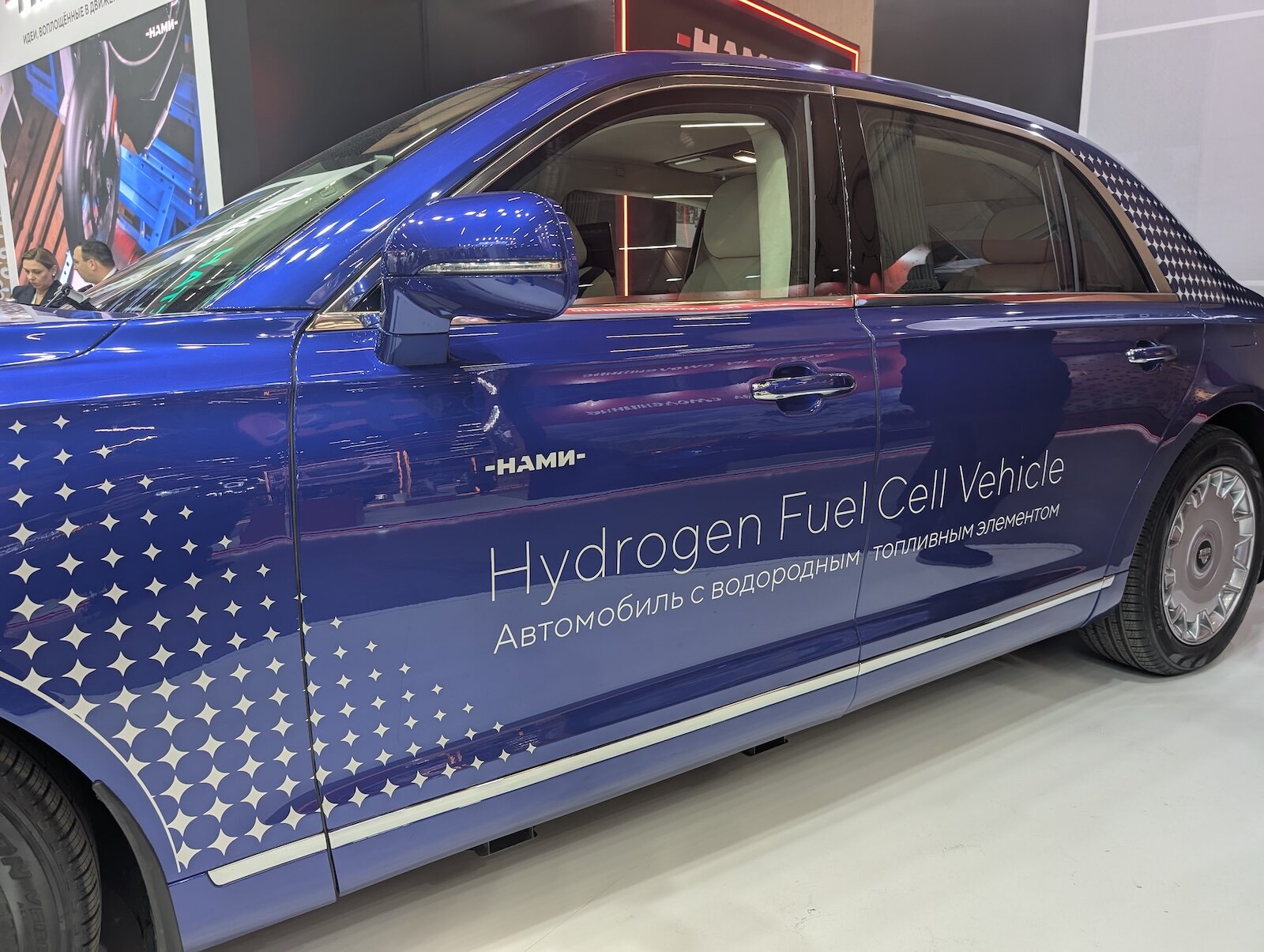 Ещё на мероприятии был представлен Aurus Senat (его премьера состоялась в прошлом году) на водородном топливном элементе — в НАМИ заявили, что это самое мощный легковой автомобиль на водороде в мире.