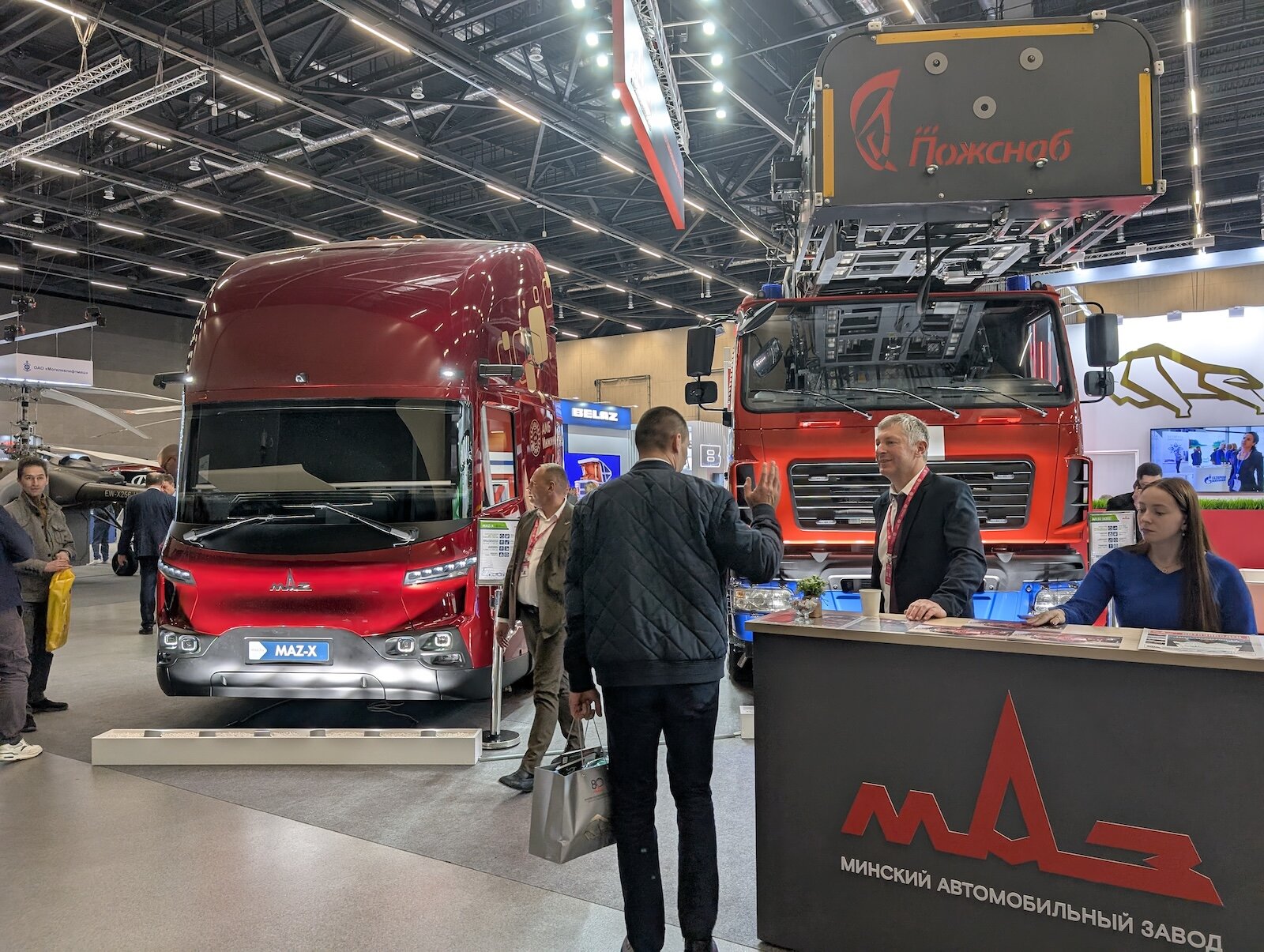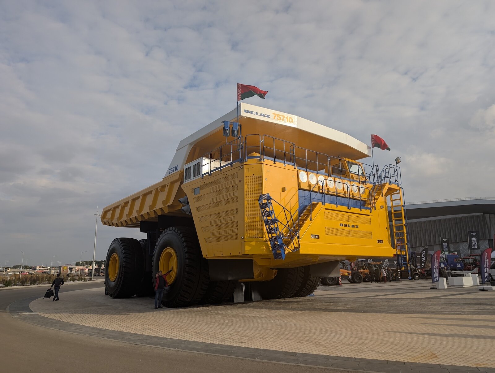 У входа на выставку можно было заметить колоссальных размеров «БелАЗ-75710» — самый большой в мире самосвал, который способен перевозить около 500 тонн груза за раз.