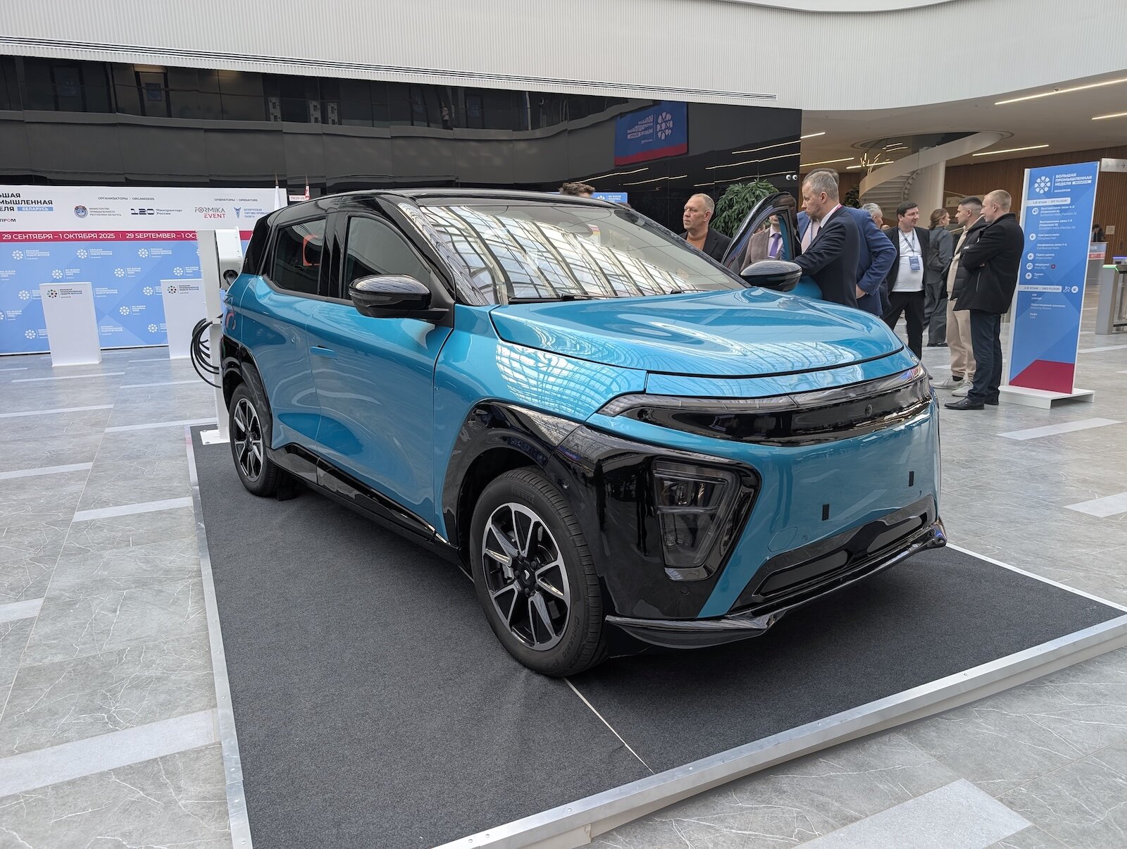 Был стенд и с российским электромобилем «Атом» от АО «Кама» — с распашными дверьми, встроенным в рулевое колесо дисплеем, довольно стильным двухцветным кузовом и богатым набором фишек экосистемы бренда.