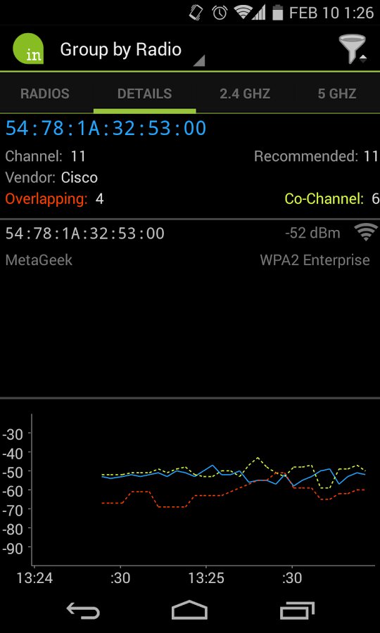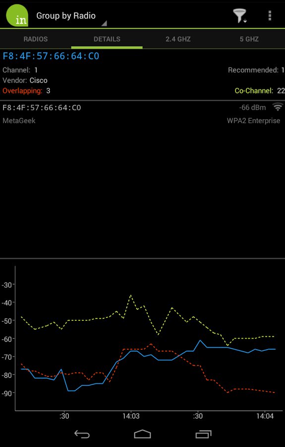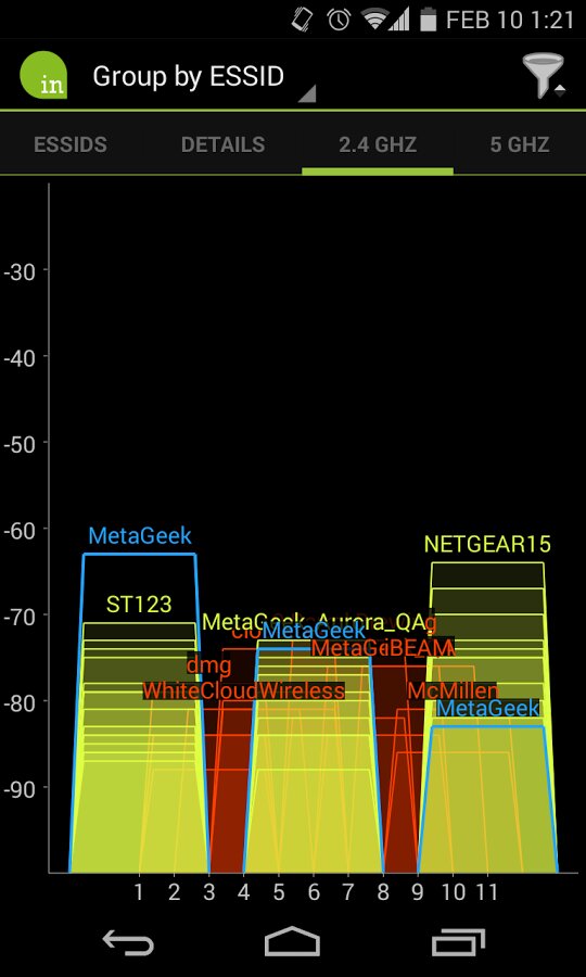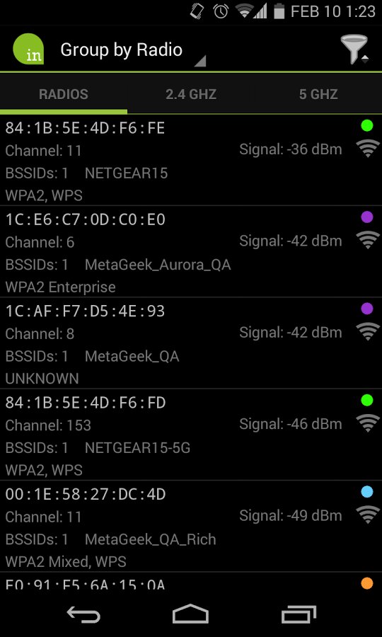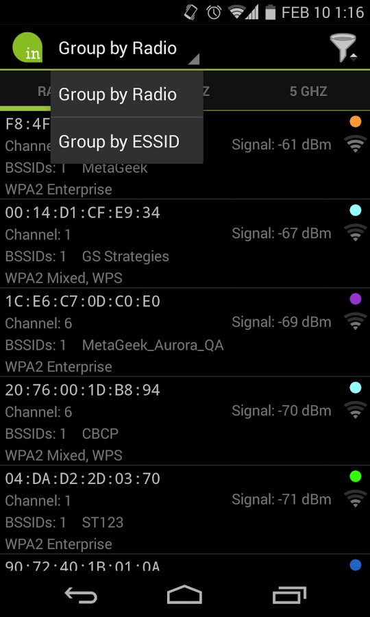 InSSIDer сканер беспроводной сети от MetaGeek. Вы сможете улучшить ваши Wi-Fi устройства, выполняя быстрое Wi-Fi обследование, которое поможет вам выбрать наилучший канал для вашей сети. Она также будет показывать протокол сетевой безопасности, пересекающиеся сети, конфликты в соседнем канале, и многое другое.