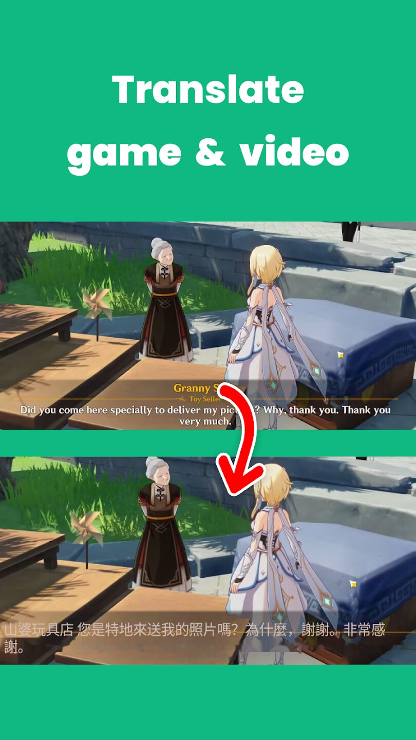 - Наложение перевода в реальном времени в любом приложении или игре.