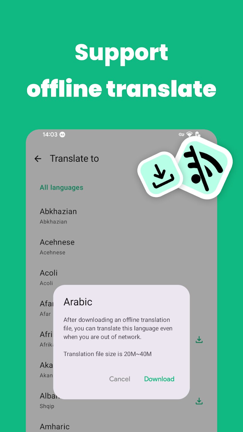 - Возможность офлайн-перевода для более 200 языков.