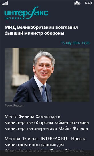 Это приложение передает в режиме реального времени новости агентства «Интерфакс» — крупнейшей информационной службы в России, Украине, Беларуси, Казахстане и Азербайджане. Более 600 корреспондентов, редакторов и аналитиков готовят около сотни изданий, созданных для того, чтобы вы первыми узнали обо всех важнейших событиях в политике и экономике. Агентство пишет не только о том, что происходит сейчас, но и помогает понять, что произойдет завтра, и поэтому в каждой статье есть всесторонний и детальный анализ ситуации, ценовые и статистические данные, комментарии от непосредственных участников событий и лучших экспертов.