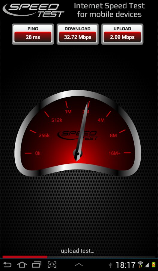 - автоматический выбор параметров тестирования в зависимости от типа соединения (WiFi, 2G/3G mobile)