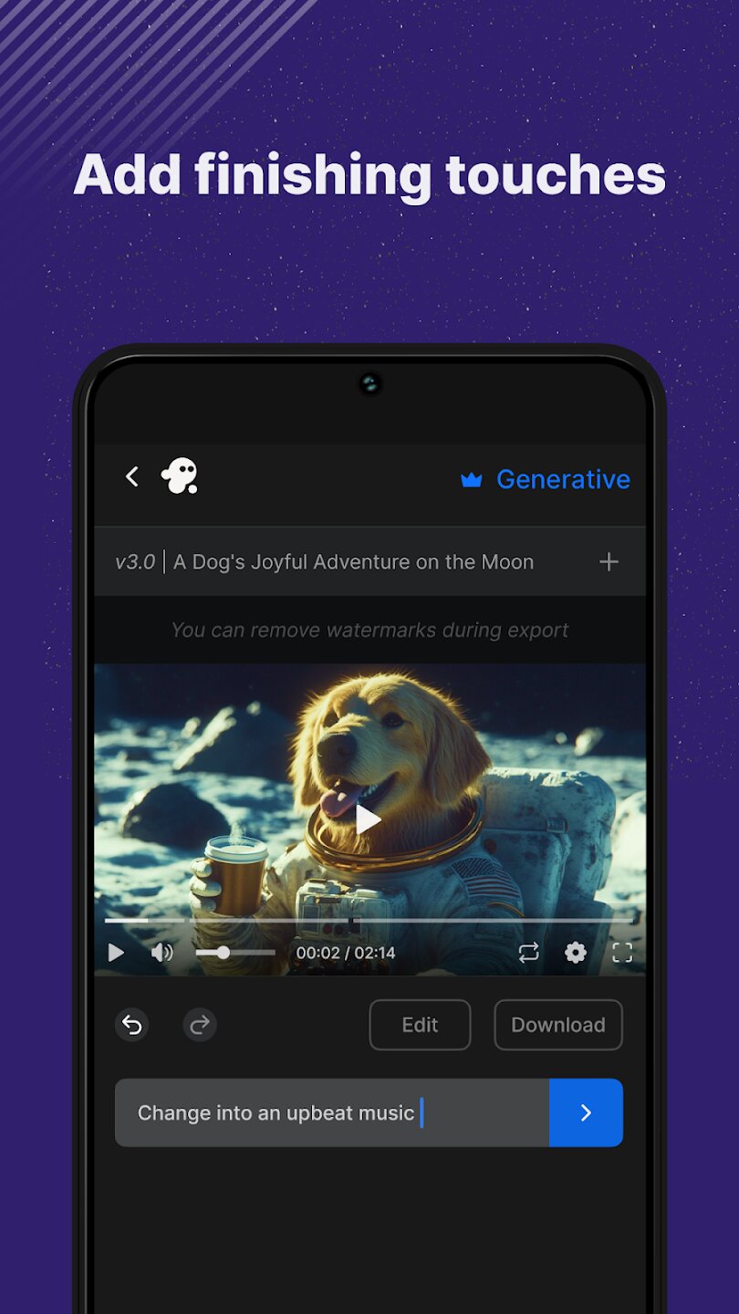 Приложение предлагает гибкие настройки: вы можете менять стиль видео, редактировать сцены, корректировать темп и добавлять собственные медиаматериалы. Встроенная библиотека с миллионами стоковых изображений и видеофрагментов помогает сделать контент уникальным и соответствующим вашей задумке.