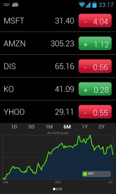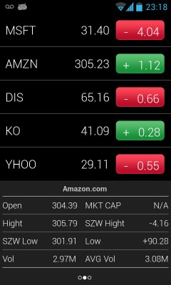 iPhone Stocks App — акции в стиле iPhone iOS7. Думаю, что многие пытались найти в Google Play простую и удобную программу для наблюдения за акциям. Посмотреть на изменения в цене, почитать последние новости и поставить на рабочий стол виджет со списком необходимых компаний, казалось, что может быть проще? И действительно, многие аппликации успешно справляются с этой задачей, забывая при этом о таких незначительных вещах как юзабилити, красота интерфейса и простота в использовании. Вот почему вдохновившись презентацией IOS 7 c Тимом Куком, мы решили создать собственное приложение для наблюдения за акциями — “Акции в стиле iPhone IOS 7”. Мы постарались максимально точно воссоздать интерфейс IPhone аппликации и сделать наше приложение максимально удобным для любого пользователя.