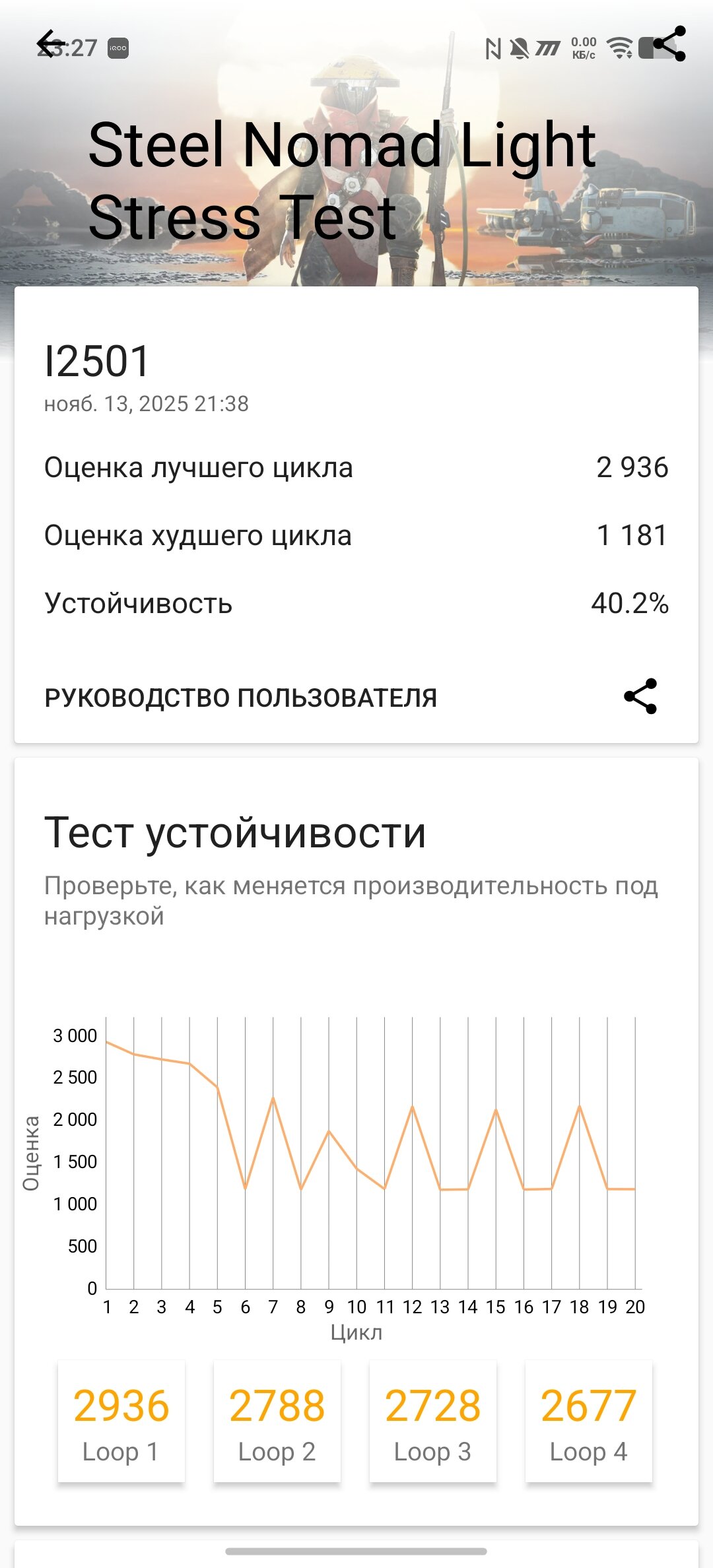 Впрочем, при тестировании флагманских чипсетов максимальная производительность — это лишь половина дела, ведь не менее важна устойчивая производительность, то есть то, как смартфон держится под нагрузкой. А с этим почти у всех топовых смартфонов проблемы.