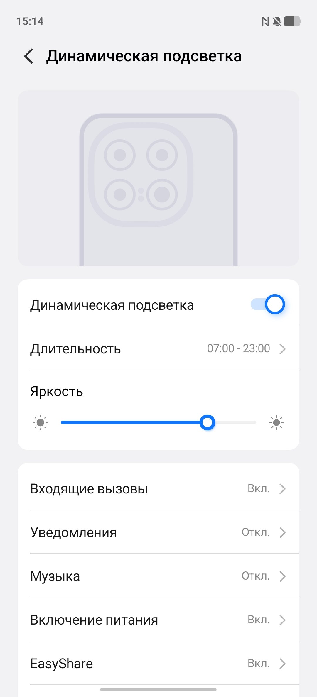 Она используется как LED-индикатор уведомлений, входящих вызовов, уровня заряда, NFC и подобного, а также задействуется в некоторых совместимых играх. По умолчанию подсветка голубая (в моей белой версии смартфона), но её цвет можно менять, как и яркость — хорошо, что iQOO обеспечила богатую кастомизацию этого элемента, благодаря которой его хочется использовать чаще.