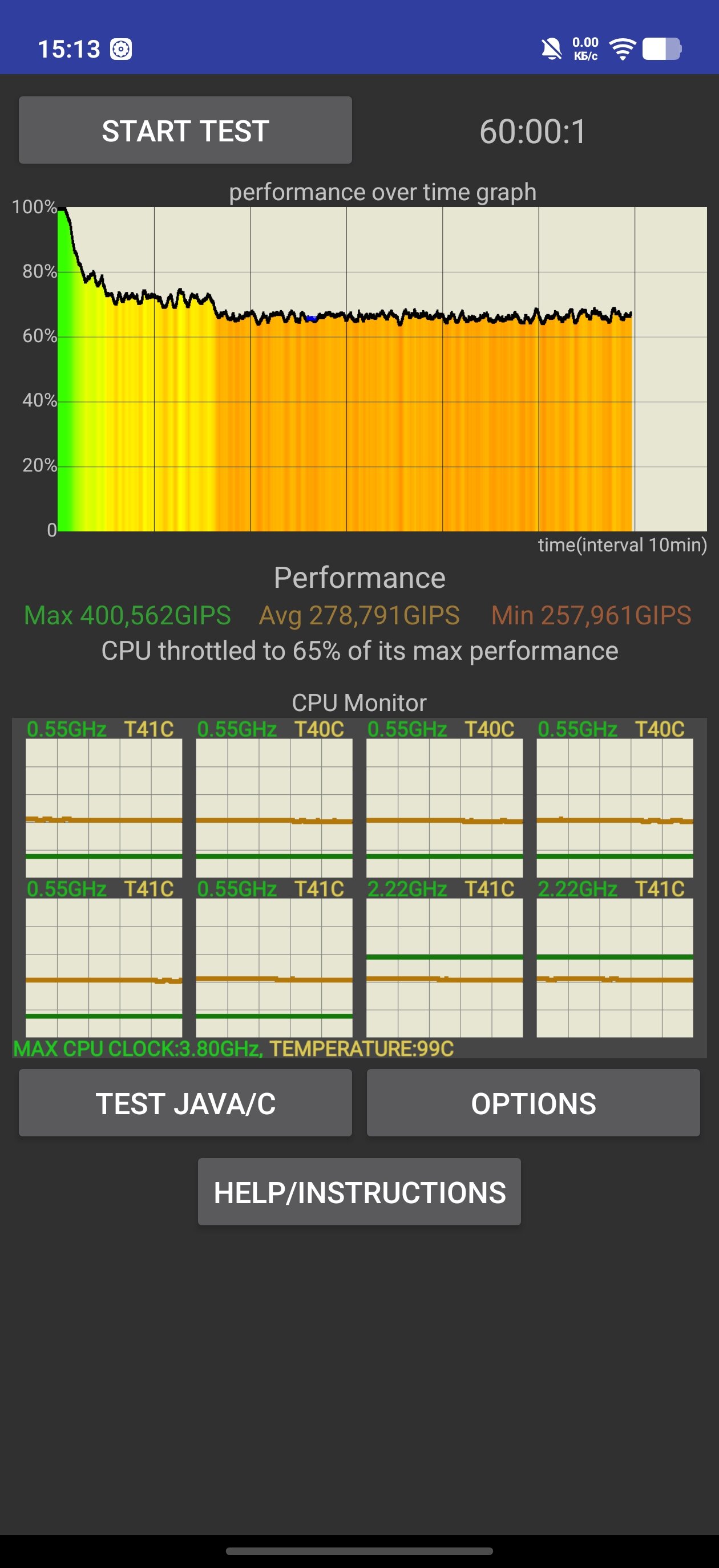 Наибольшую разницу между режимами производительности я заметил в стресс-тестах — «монстр» показывает себя во всей красе в вопросах снижения троттлинга графики под нагрузкой.