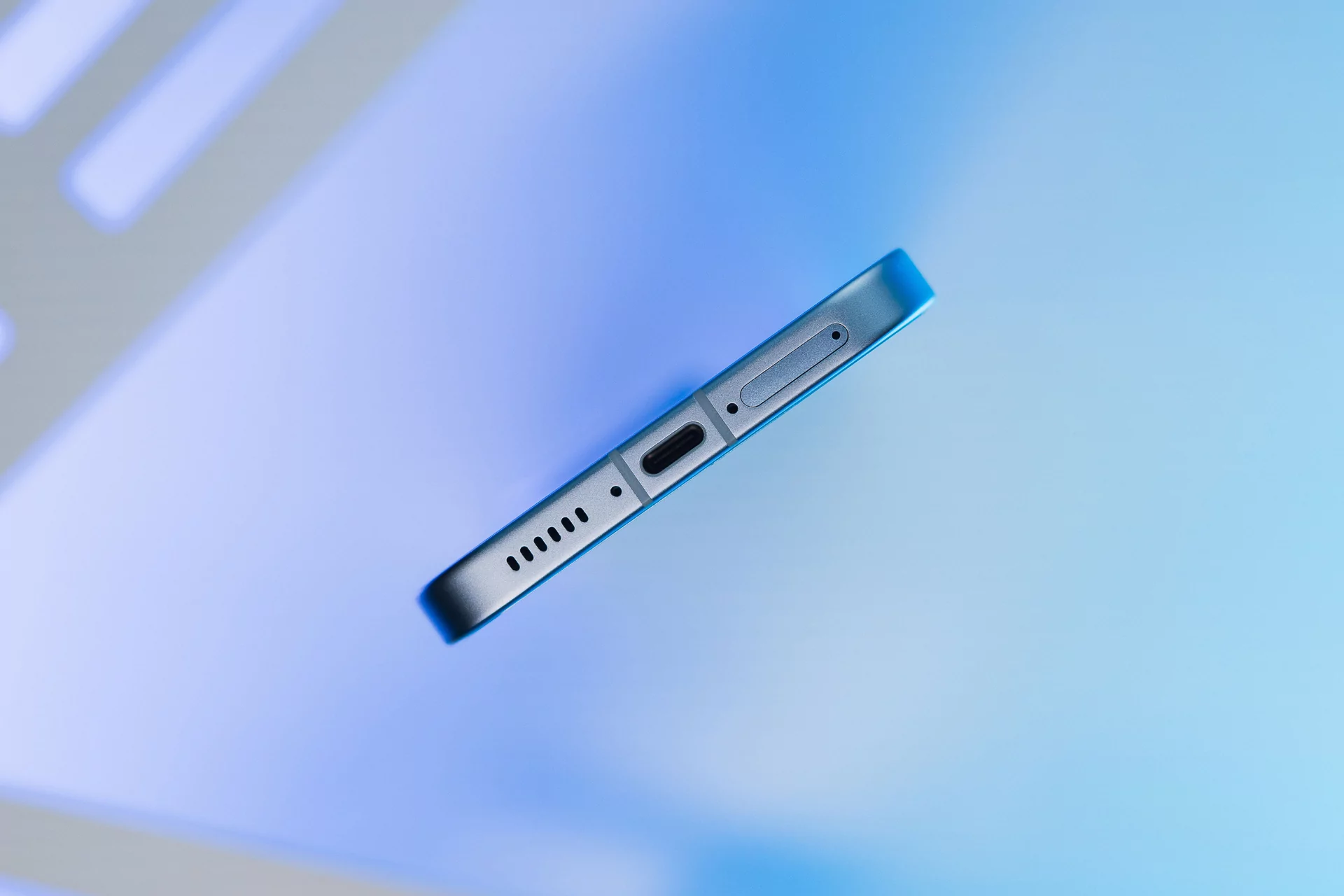 Раз уж начали рассматривать рамку, давайте продолжим: все кнопки (качелька и блокировка/разблокировка) размещены справа, внизу расположен порт USB-C, один из микрофонов, один из динамиков и слот для двух SIM-карт, а сверху установлены вторые микрофон и динамик.