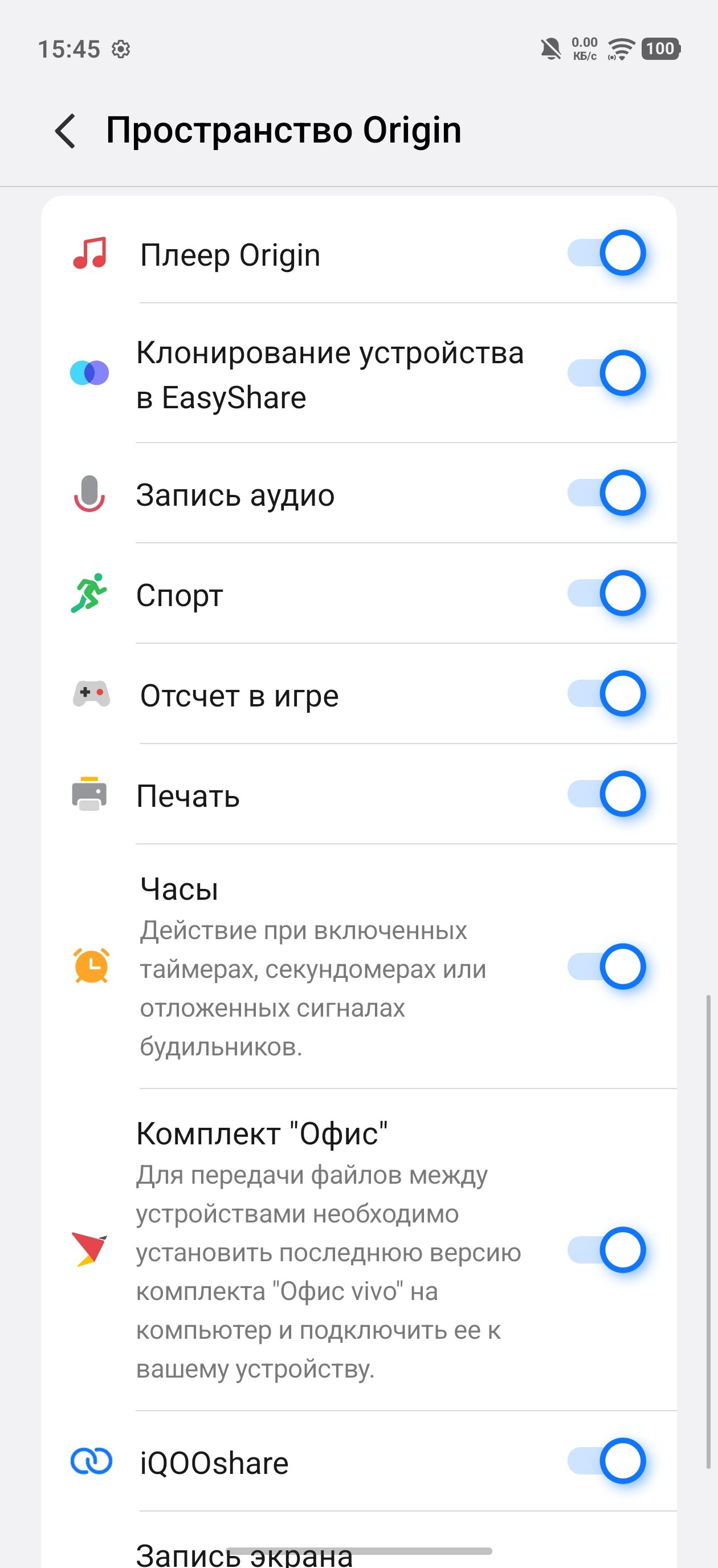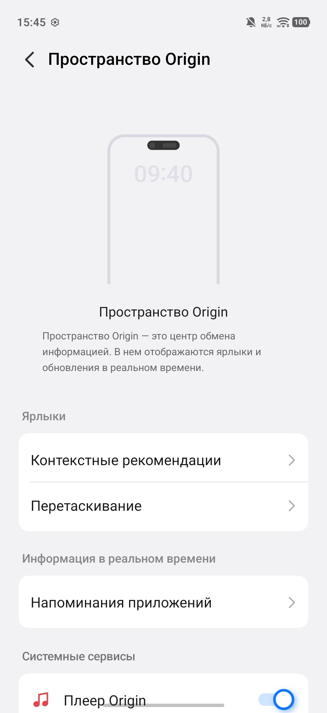 При тестировании этой оболочки мне особенно приглянулись интересные или просто современные функции (помимо игровых возможностей, о которых я писал выше). Так, к примеру, здесь есть доставаемая сбоку экрана плавающая шторка с избранными приложениями, динамический островок «пространство Origin» вокруг фронтальной камеры (можно настраивать, что на нём будет и не будет отображаться, причём есть поддержка популярных российских сервисов) и режим «Супераудио», автоматически оптимизирующий звук с динамика путём добавления того или иного аудиоэффекта в зависимости от воспроизводимого аудио.