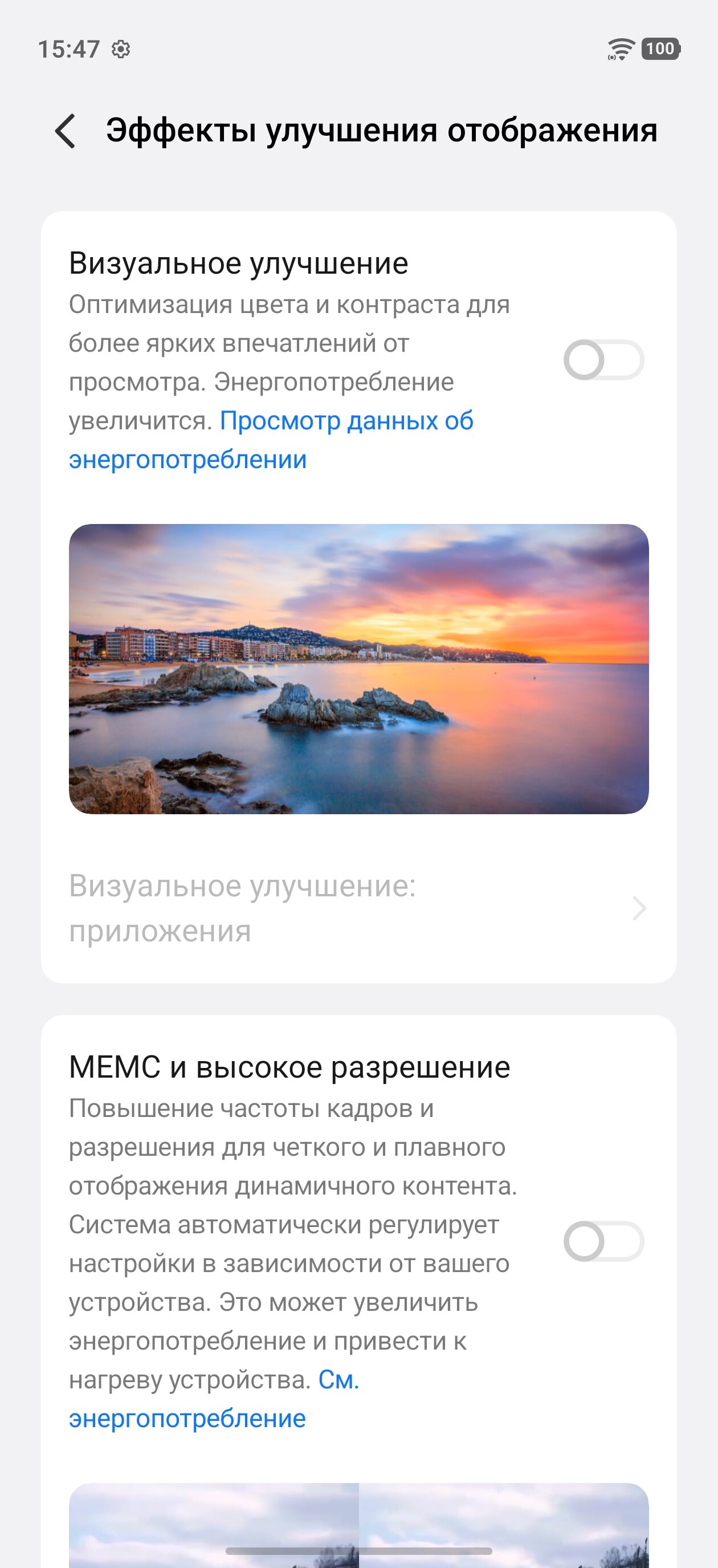 Приятно, что производитель позволяет снизить разрешение с 1260×2750 до 1080×2358 пикселей — я уверен, что подавляющее большинство людей не заметят разницы, но экран будет потреблять меньше энергии. Также iQOO позаботилась о всевозможных функциях защиты зрения и адаптации дисплея к периоду отхода ко сну.