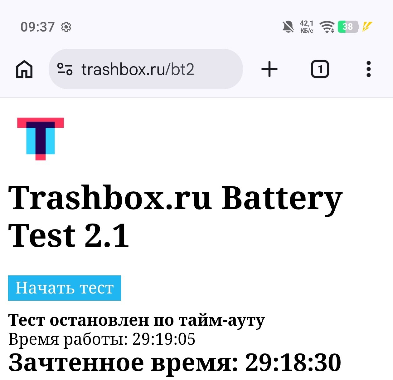 Результаты тестов батареи Trashbox.ru: