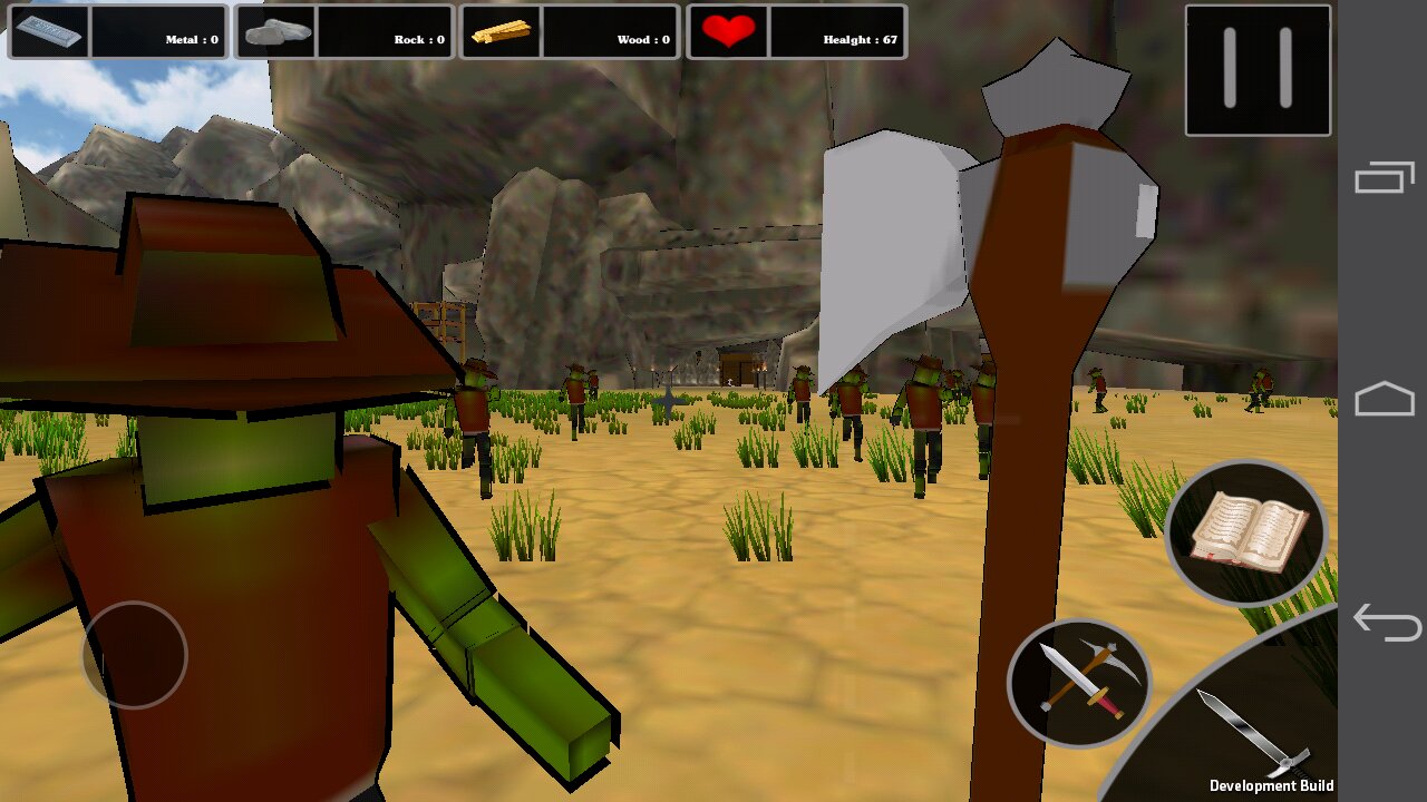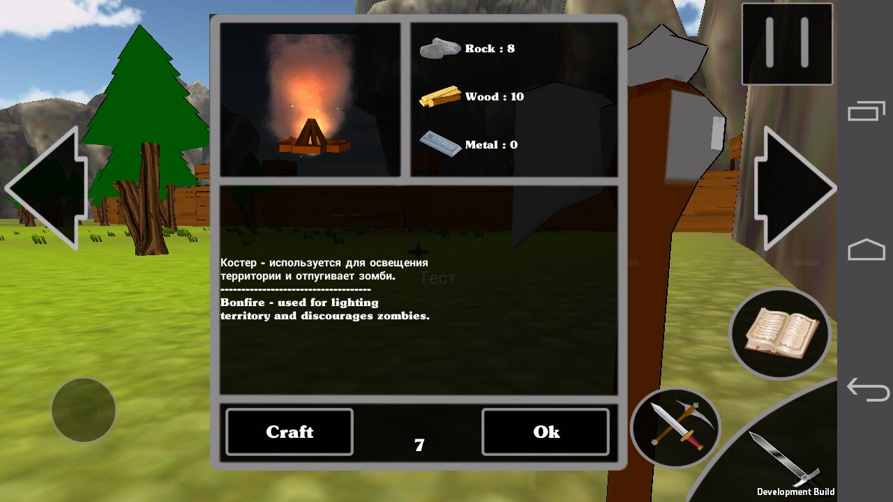 Каждую ночь на неизведанную землю будут приходить страшные зомби. Вы можете переждать ночь в своем домике, можете бегать от зомби, либо дать отпор и сразиться с ними!