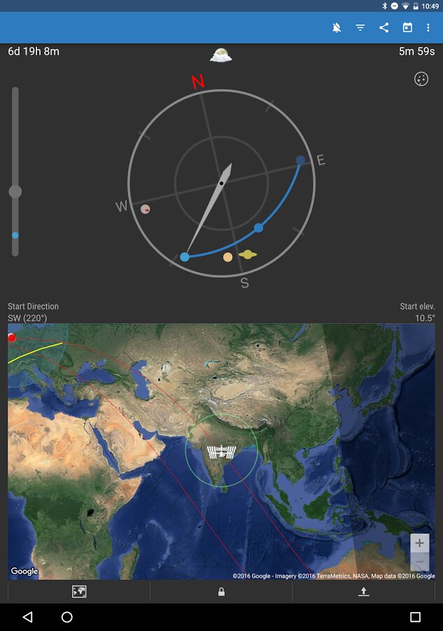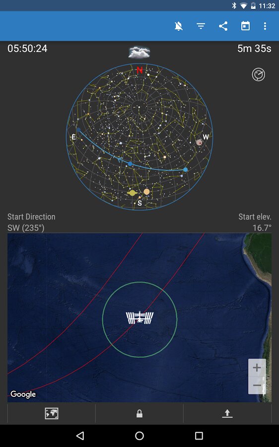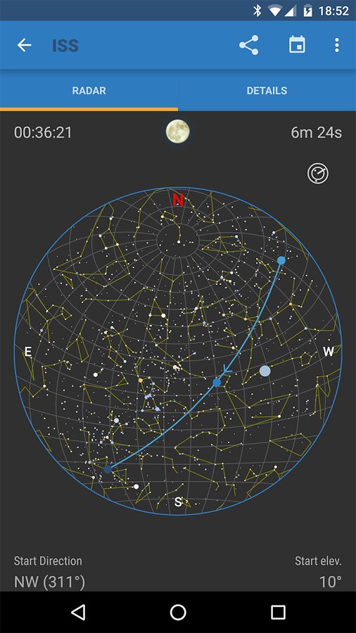 МКС детектор является простым в использовании трекером слежения за спутниками. Вы никогда не пропустите проход Международной космической станции, и вы никогда не пропустите яркие вспышки спутников связи. Уникальной частью является прогноз погоды.