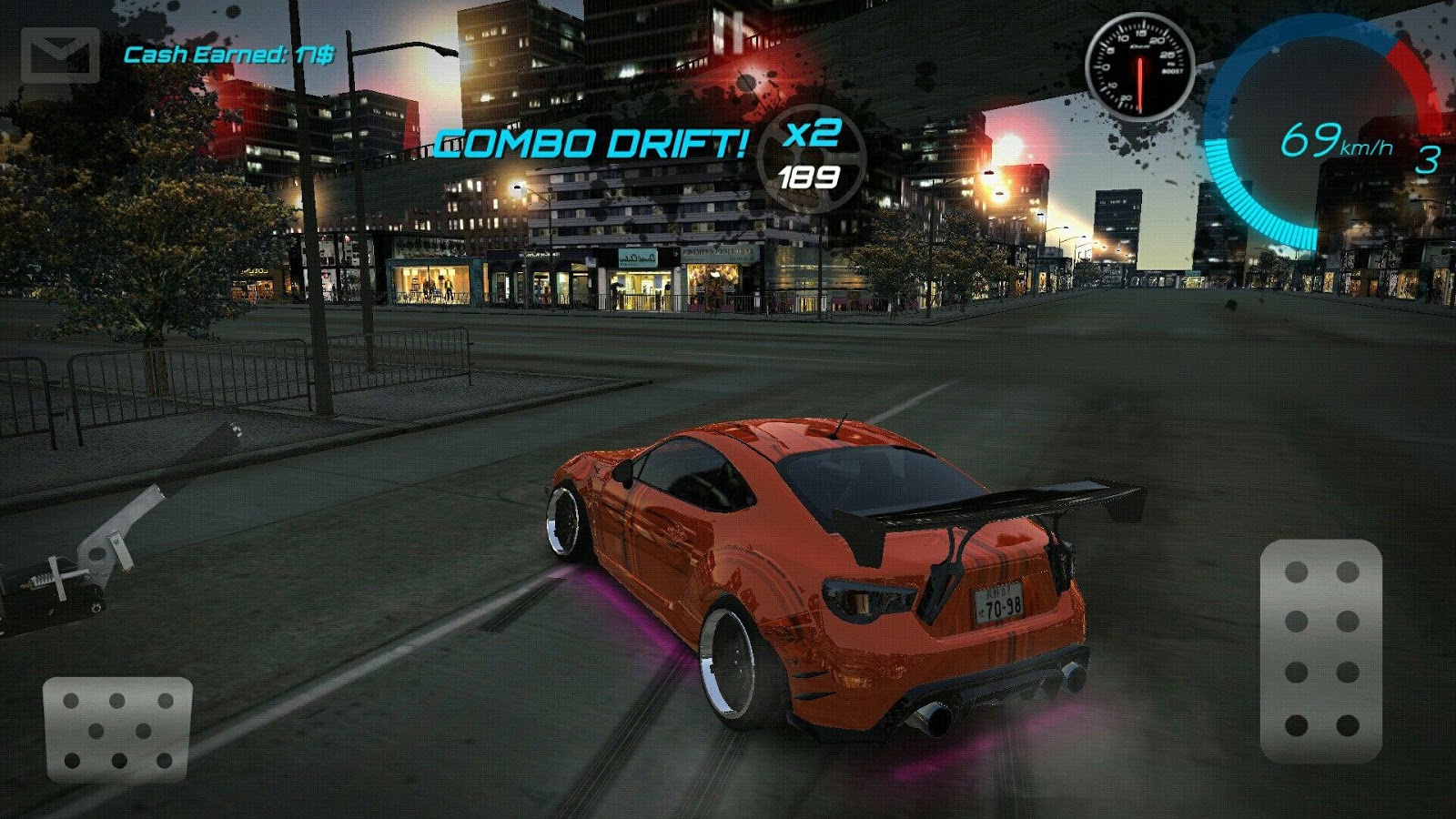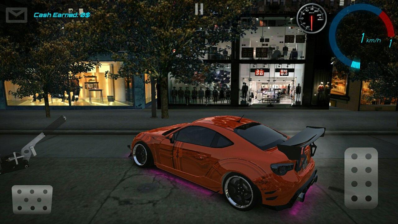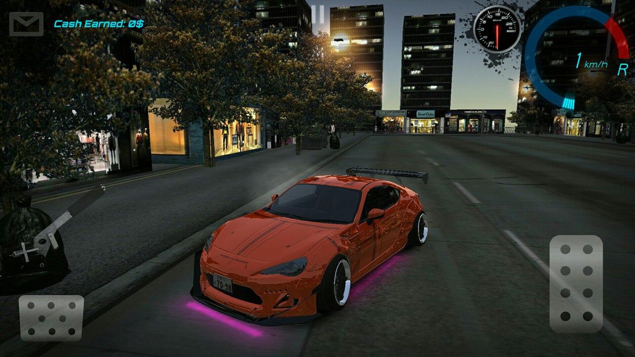 Для дрифта вам доступна просторная парковка, на которой вы можете выполнять длинные и эффектные заносы. За пределами парковки находится город, ночные улицы которого находятся в вашем полном распоряжении. Всего одним нажатием вы можете отправить фото лучшего вашего заноса другу или поделиться этим фото в соц.сетях.